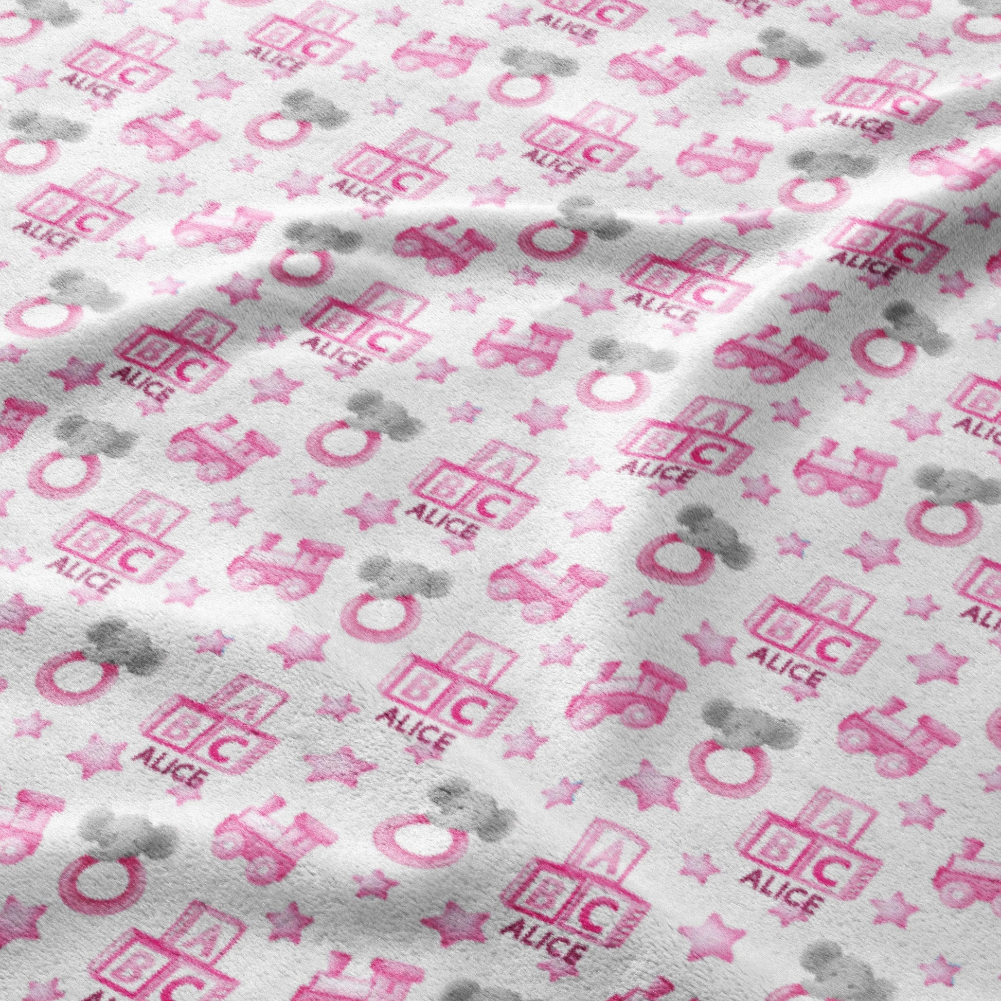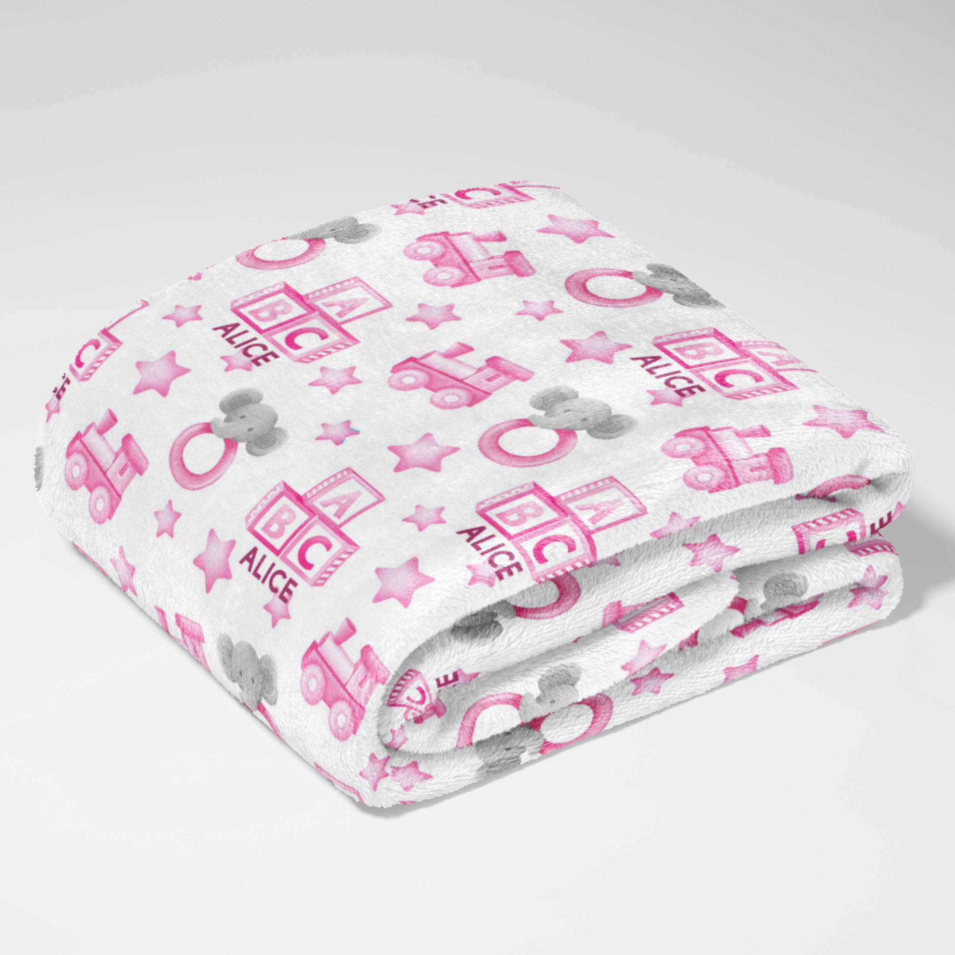 All aboard for snuggles and fun with our ABC & Toy Train Adventure Fleece blanket! This adorable fleece blanket features a playful pattern of colorful toy trains chugging along with ABC blocks, stars, and rings. The gentle fleece fabric is perfect for keeping your baby warm and cozy during nap time, playtime, or stroller rides. Its cheerful design adds a touch of whimsy to any nursery, and it's machine washable for easy care. A perfect gift for newborns and infants!