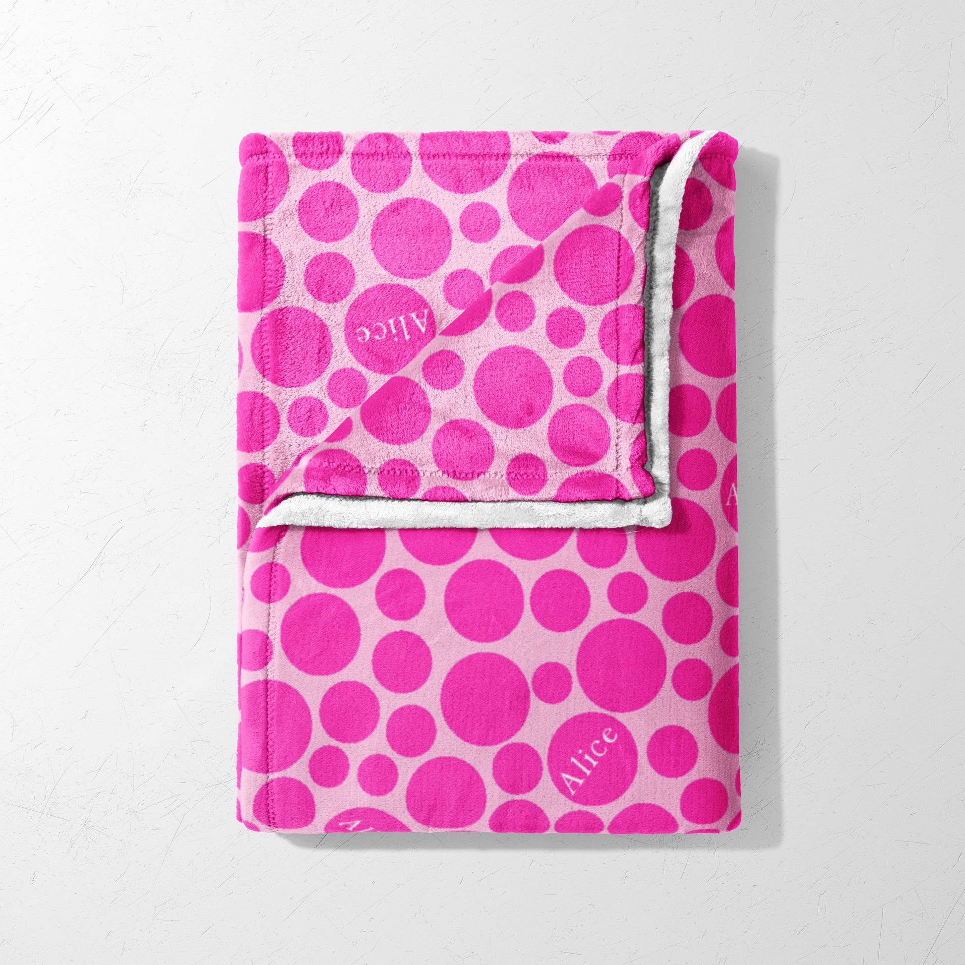 This blanket is bursting with playful polka dots! Imagine a whole bunch of pink circles, all different sizes, dancing on a cozy background. They're like little bubbles of fun, ready to tickle and snuggle your little one. Each circle has its own special shade of pink, so it's like a party of colors just waiting to be explored!