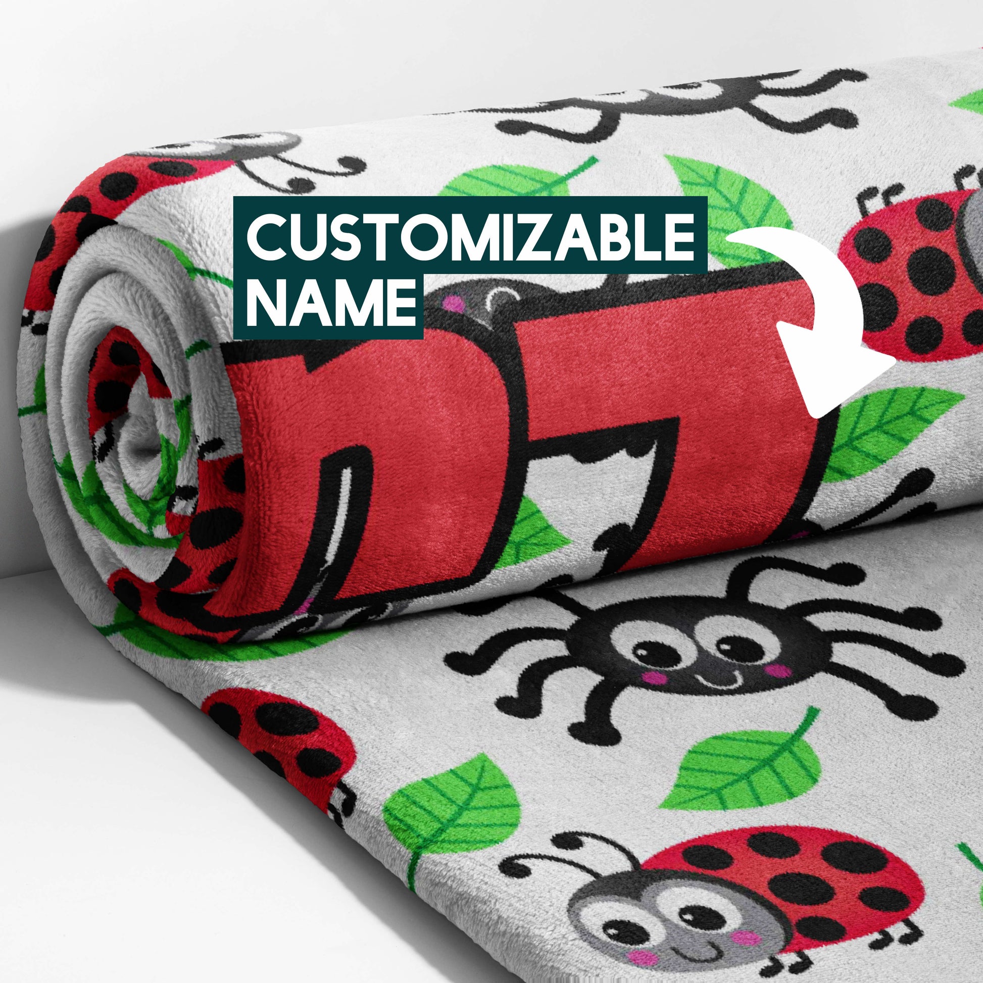Get ready for a buggy adventure with our Buggy Buddy Blanket! It's like having a picnic in a meadow with all these friendly ladybugs and spiders. This blanket is so soft and cuddly, it's perfect for snuggling up on the couch or having a tea party with your favorite stuffed animals. It's great for boys and girls who love all things nature and cute! And guess what? You can even add your name to make it extra special!
