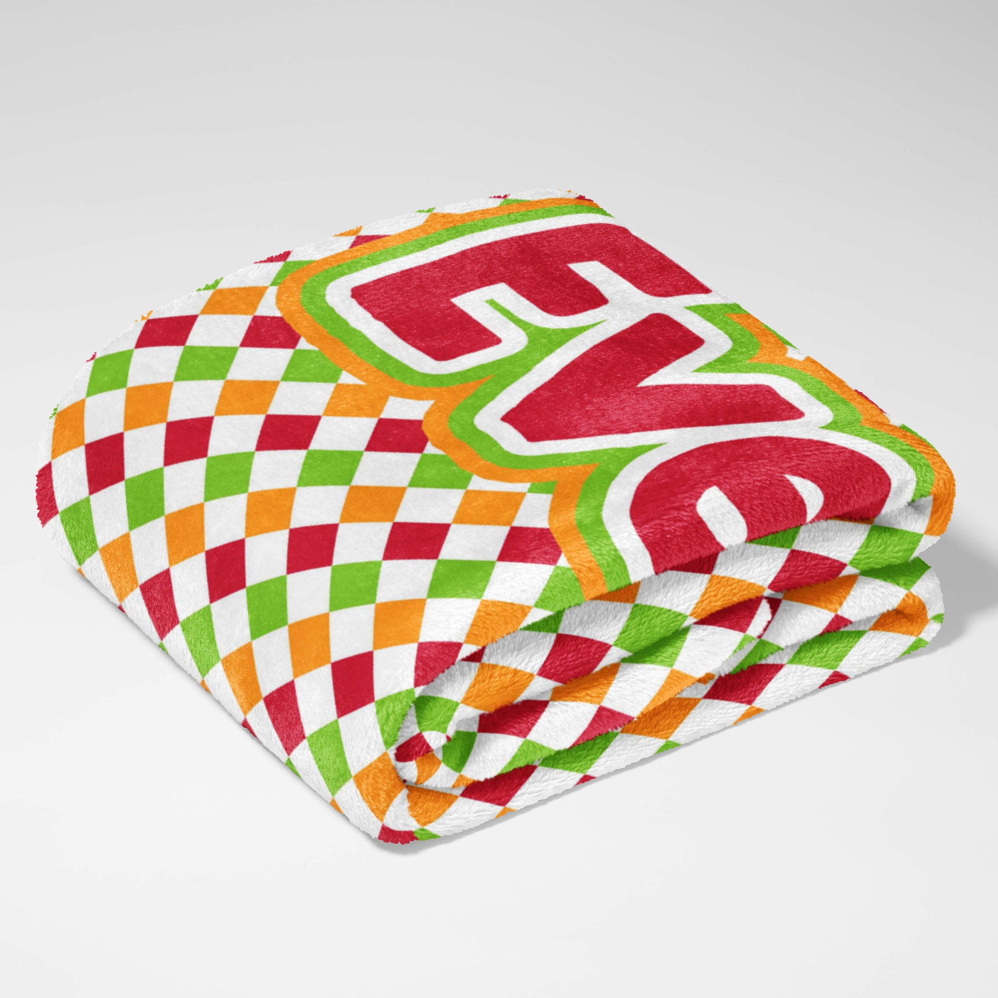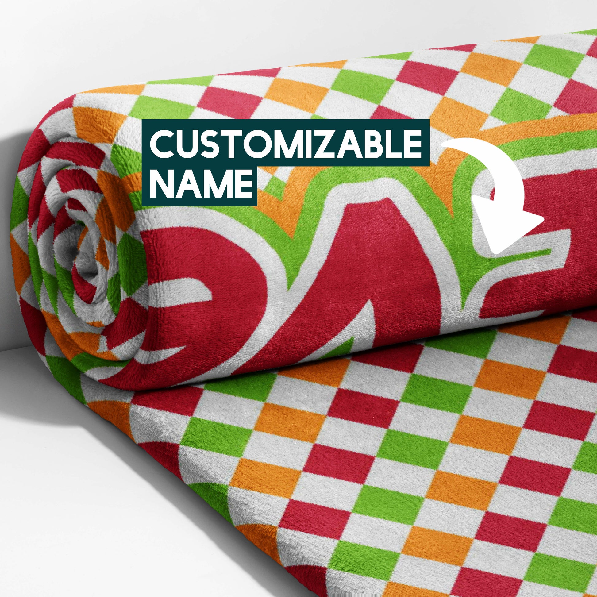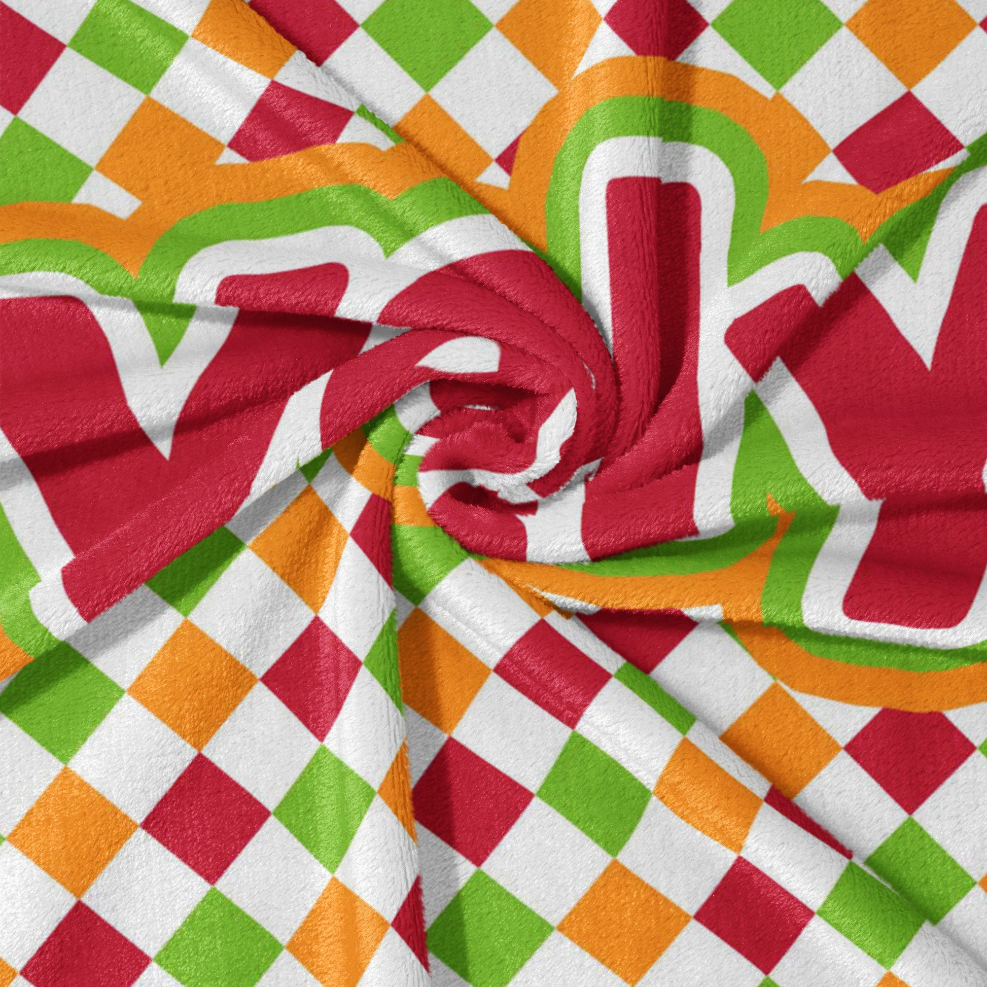 Bring on the fun with the Checkerboard Cheer Personalized Snuggle Blanket! This blanket is perfect for your playful little girl or boy, featuring a colorful pattern of diamonds in red, orange, green, and white, like a cheerful checkerboard. Made from the coziest, high-quality fleece, it's perfect for snuggling up during game time, building forts, or any time your little one wants to feel extra warm and happy. This throw isn't just super soft; it's also personalizable, making it a truly special gift. Imagine adding your little one's name to make it their very own! Whether it's for playtime or bedtime, this blanket is sure to bring a burst of color and joy.