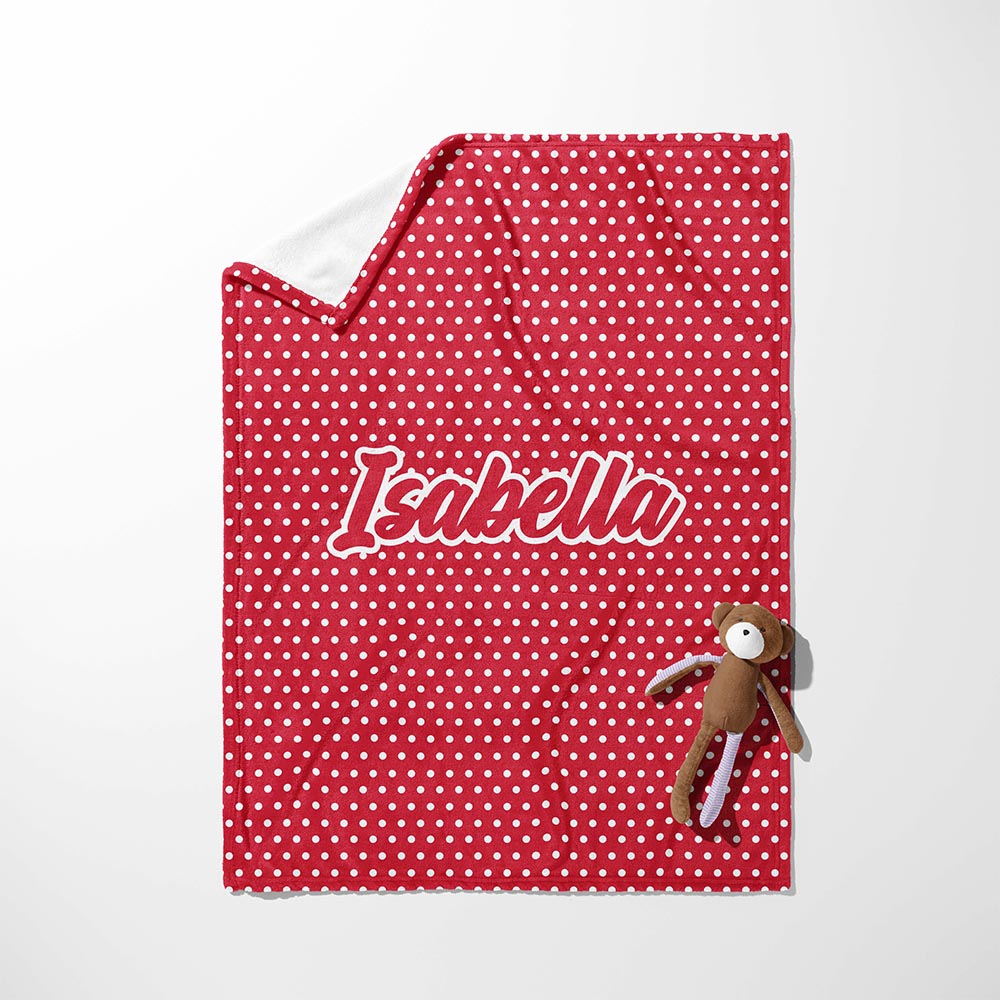 Sweet dreams are made of dots! The Cherry Dots Personalized Snuggle Blanket is perfect for your little girl, featuring a classic pattern of white dots on a vibrant red background, like sweet cherries scattered across a picnic blanket. Made from the coziest, high-quality fleece, it's perfect for snuggling up during nap time, story time, or any time your little one wants to feel extra cozy. This throw isn't just super soft; it's also personalizable, making it a truly special gift. Imagine adding your little one's name to make it their very own! Whether it's for playtime or bedtime, this blanket is sure to become a cherished favorite.