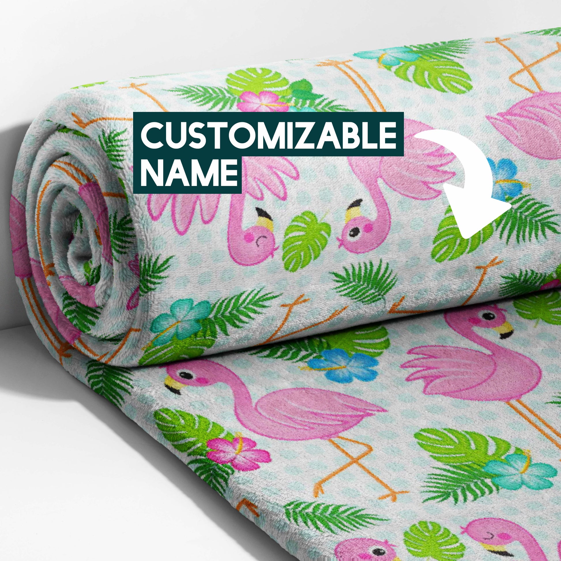 Oh, boy! Get ready for a flock of fun with our Flamingo Frenzy Blanket! It's like a pink party with all those flamingos and flowers! This blanket is so soft and comfy, it's perfect for snuggling up on the couch or having a picnic in your room. It's great for boys and girls who love all things pink and fun! And guess what? You can even add your name to make it extra special!