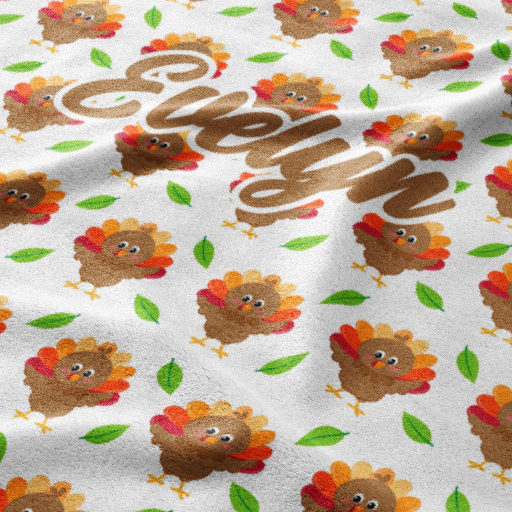 Get ready for some cozy cuddles with the Gobble Time Personalized Snuggle Blanket! This blanket is perfect for your little one during the fall season, featuring a playful pattern of cute turkeys and colorful leaves, like a fun Thanksgiving celebration. Made from the coziest, high-quality fleece, it's perfect for snuggling up during movie nights, reading stories, or any time your little girl wants to feel extra warm and festive. This throw isn't just super soft; it's also personalizable, making it a truly special gift. Imagine adding your little one's name to make it their very own! Whether it's for playtime or bedtime, this blanket is sure to bring a smile and a little Thanksgiving cheer.