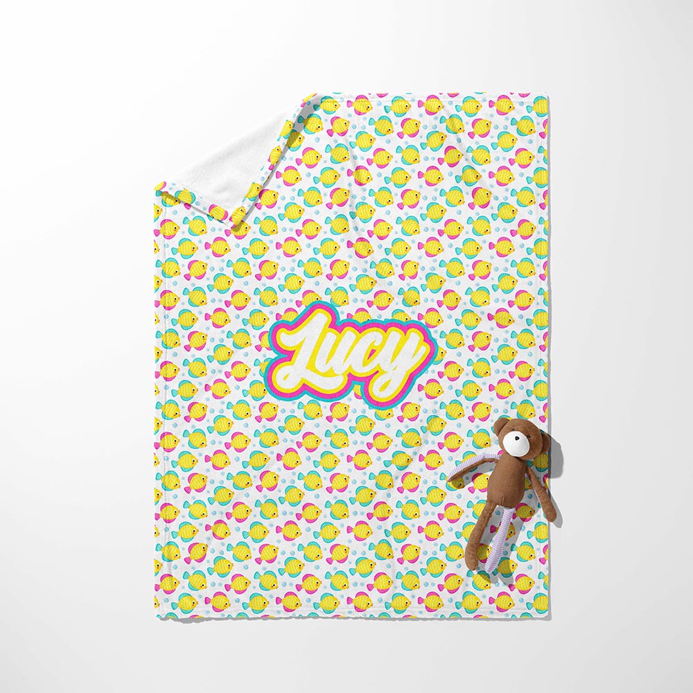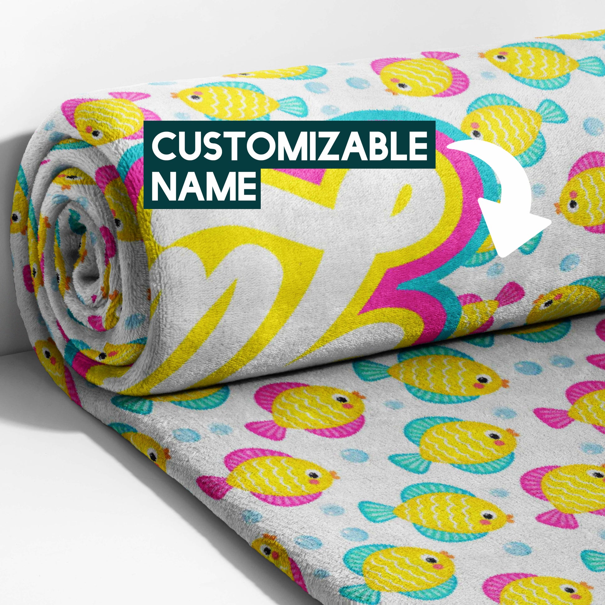 Swim into sweet dreams with the Little Fishies Personalized Snuggle Blanket! This blanket is perfect for your little one, featuring a colorful pattern of adorable fishies swimming all around. Made from the coziest, high-quality fleece, it's perfect for snuggling up during nap time, story time, or any time your little girl wants to feel extra cozy. This throw isn't just super soft; it's also personalizable, making it a truly special gift. Imagine adding your little one's name to make it their very own! Whether it's for playtime or bedtime, this blanket is sure to make a big splash.