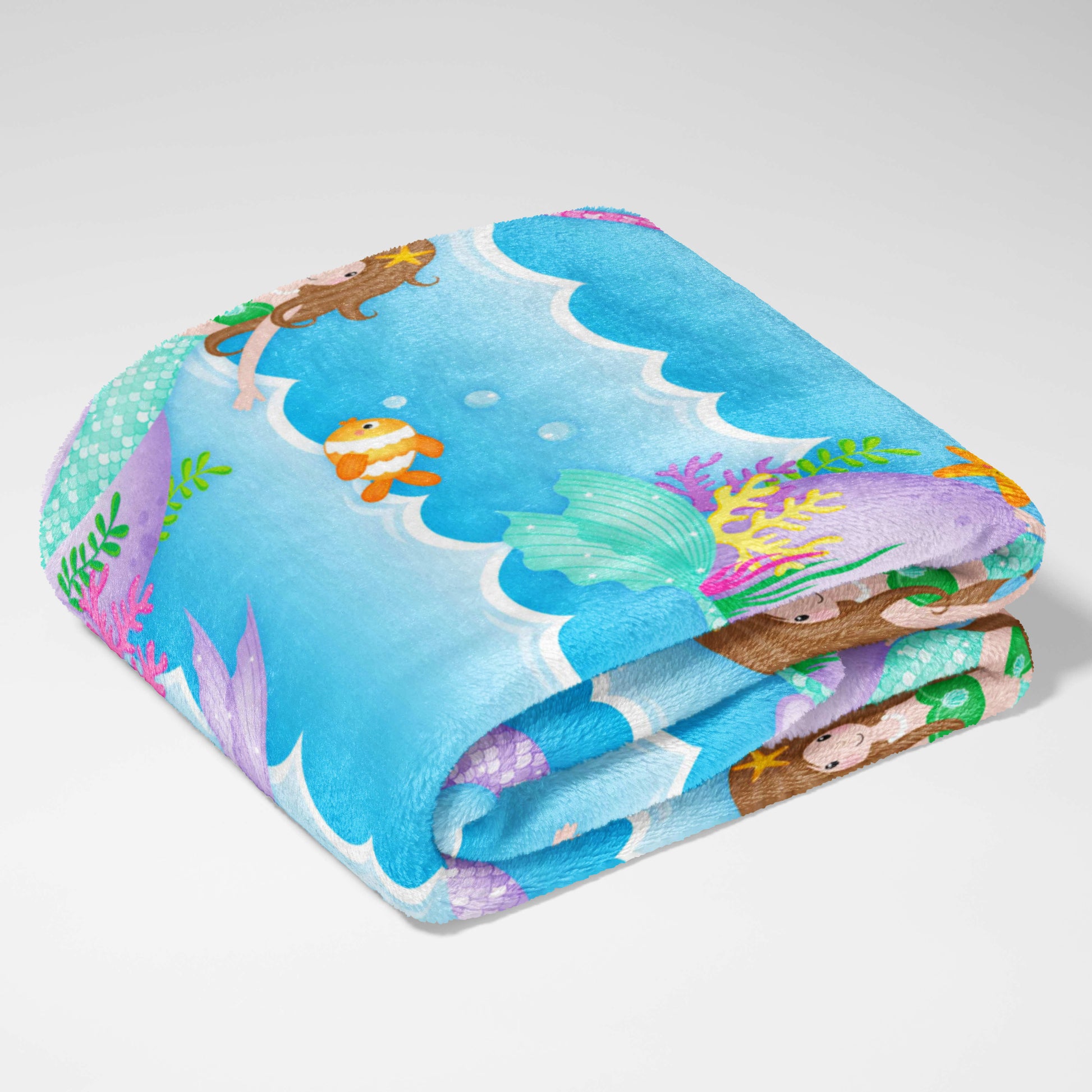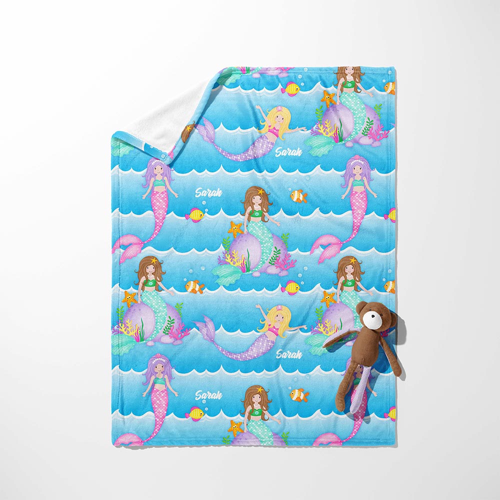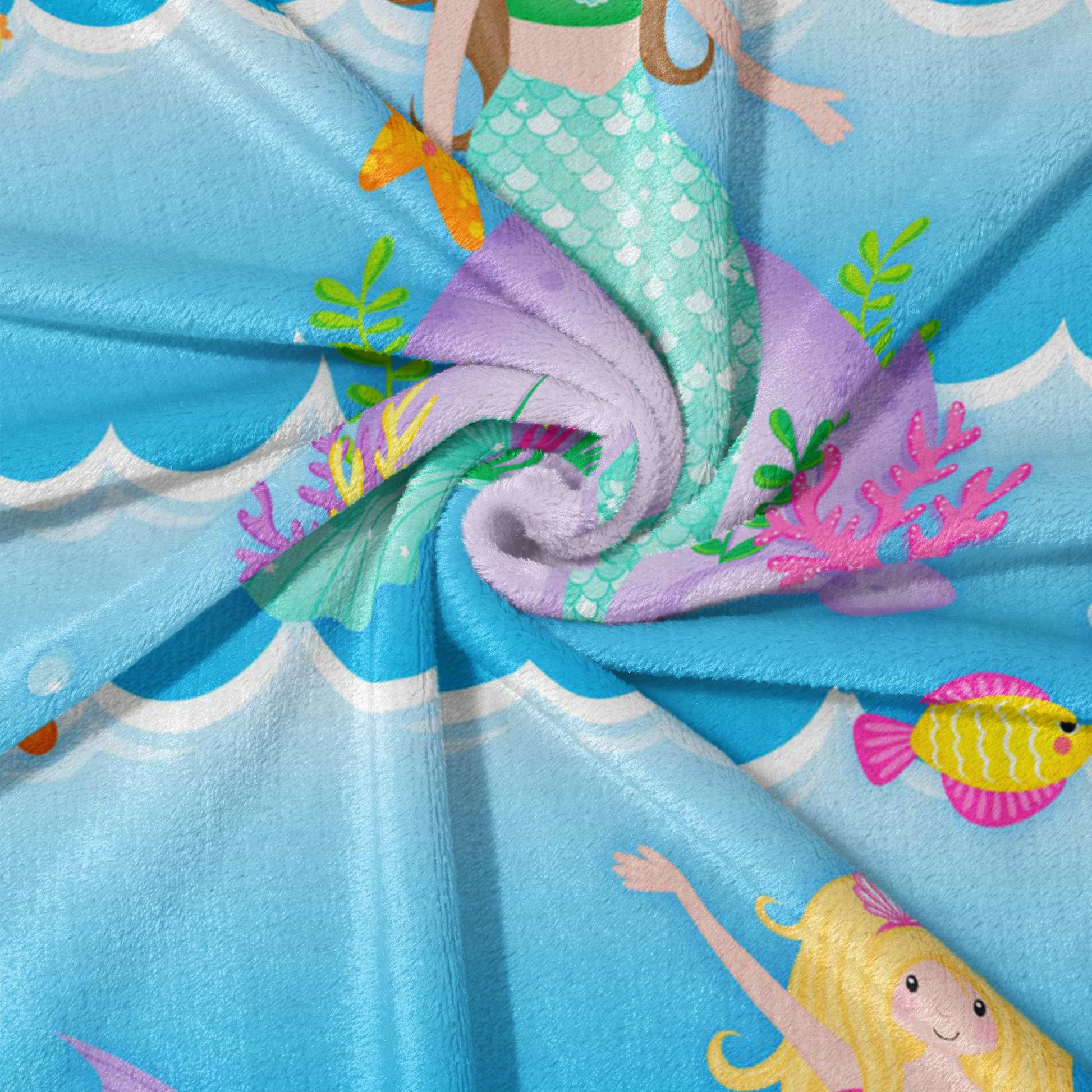 Dive into a world of enchantment with the Mermaid Dreams Personalized Snuggle Blanket! This blanket is perfect for your little mermaid, featuring a playful pattern of colorful mermaids swimming amongst the waves. Made from the coziest, high-quality fleece, it's perfect for snuggling up during nap time, story time, or any time your little one needs a warm embrace. This throw isn't just incredibly soft; it's also personalizable, making it a truly unique and cherished gift. Imagine adding your little one's name to make it extra special! Whether it's for playtime or bedtime, this blanket is sure to make a splash.