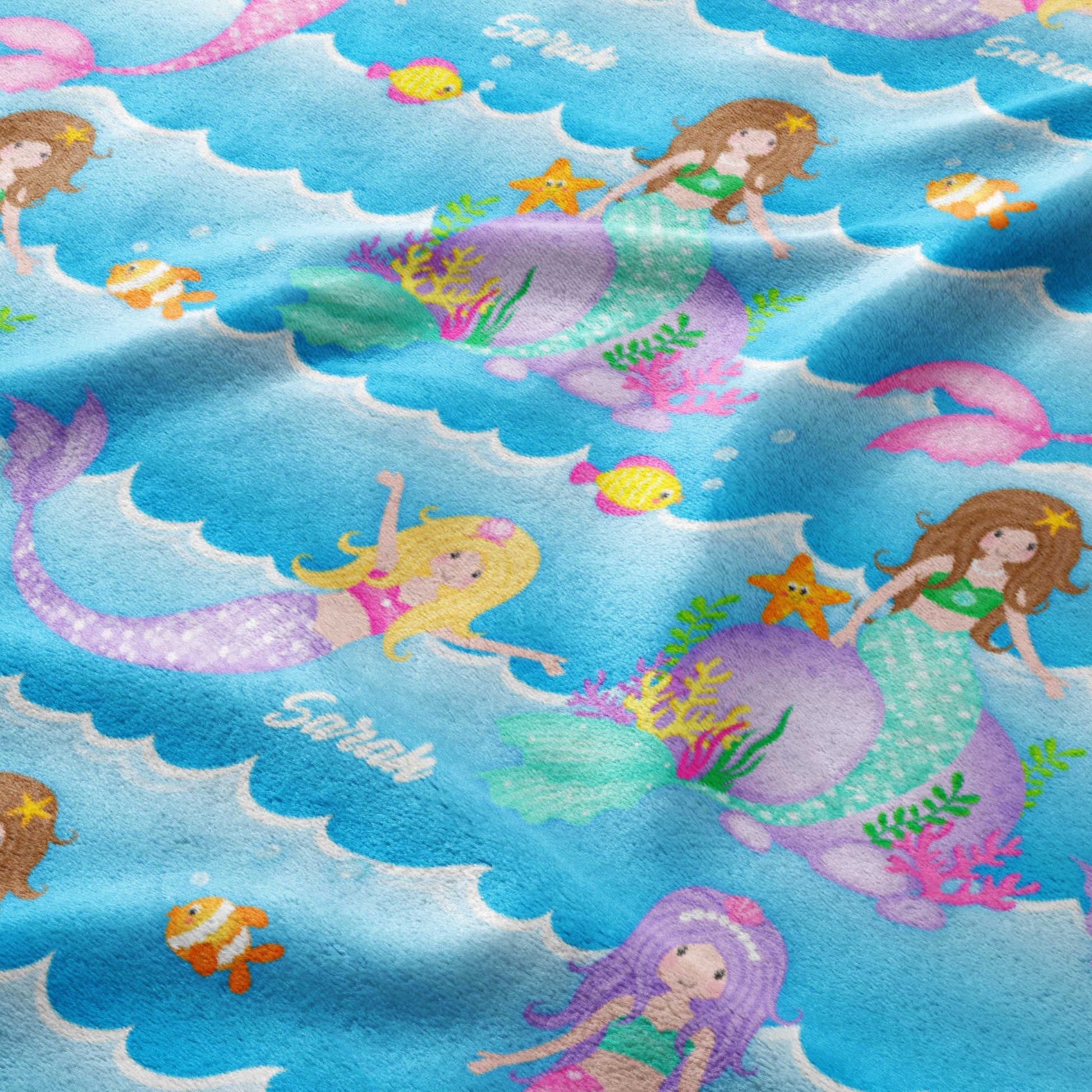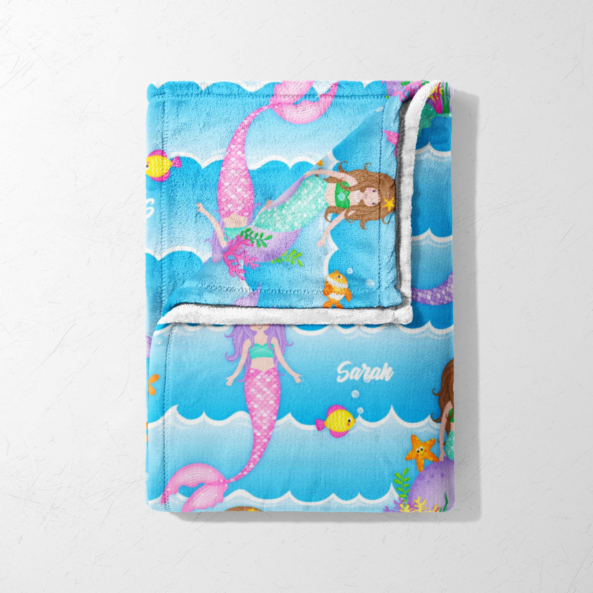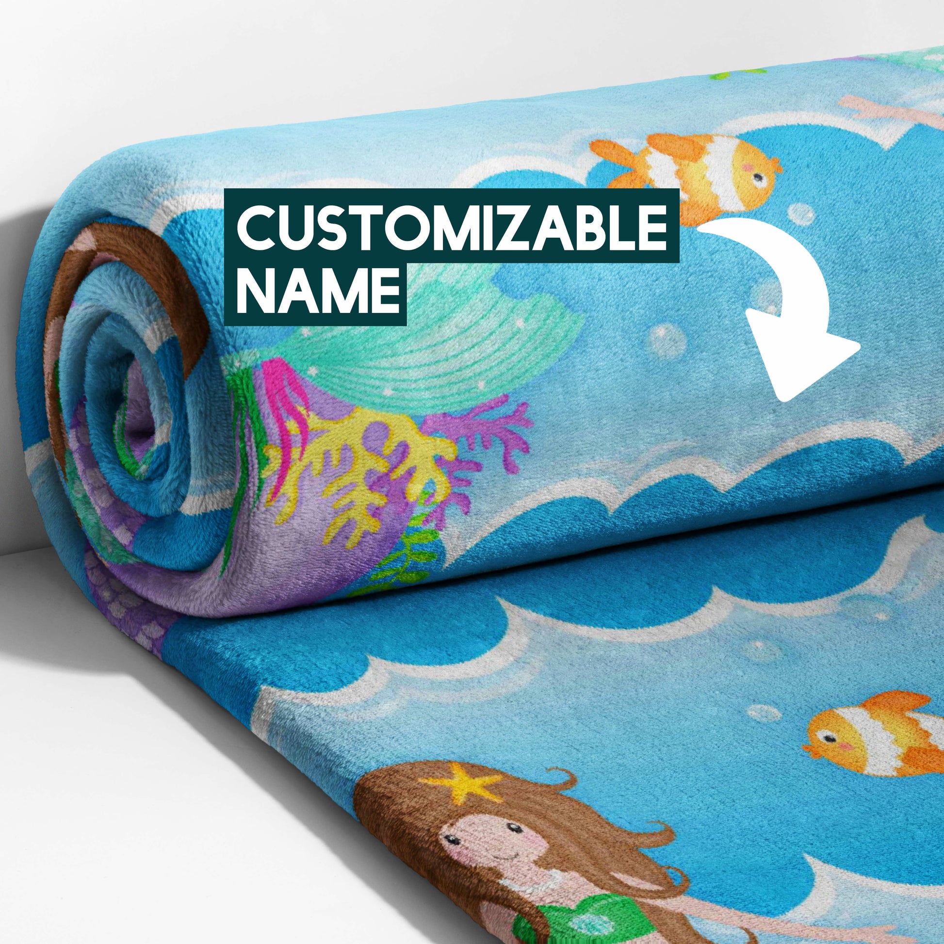 Dive into a world of enchantment with the Mermaid Dreams Personalized Snuggle Blanket! This blanket is perfect for your little mermaid, featuring a playful pattern of colorful mermaids swimming amongst the waves. Made from the coziest, high-quality fleece, it's perfect for snuggling up during nap time, story time, or any time your little one needs a warm embrace. This throw isn't just incredibly soft; it's also personalizable, making it a truly unique and cherished gift. Imagine adding your little one's name to make it extra special! Whether it's for playtime or bedtime, this blanket is sure to make a splash.