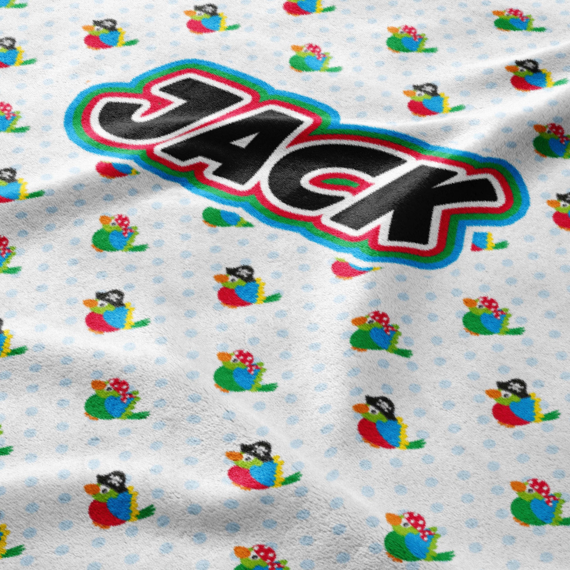 "Ahoy, matey! Get ready for some cozy cuddles with our Parrot Pirate Pals Blanket! This isn't just a throw, it's a flock of fun! Imagine wrapping up in the softest plush fabric, perfect for little adventurers dreaming of sailing the high seas with their feathered friends. The blanket features a playful pattern of colorful parrots all dressed up as pirates, complete with eye patches and tiny pirate hats! It's perfect for snuggling during story time, keeping warm during movie nights, or building the ultimate pirate hideout. And the best part? You can make it extra special by personalizing it with a name or a fun pirate phrase. It's the perfect gift for any little buccaneer who loves parrots and pirates alike!"