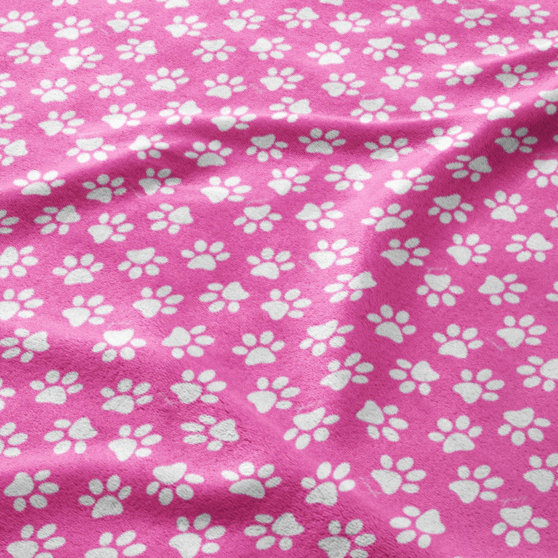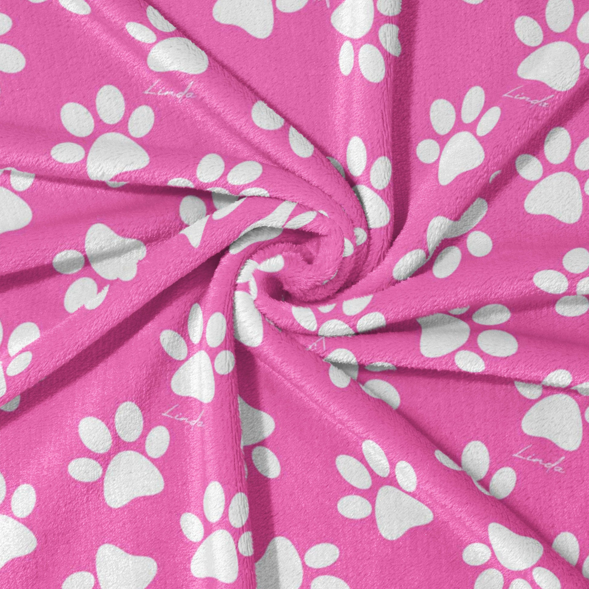 Brrr! Feeling a little chilly? Wrap yourself up in our Pink Paw Print Parade Blanket! This warm and fuzzy fleece is covered in adorable pink and white paw prints. It's like having a playful puppy party right on your lap! This pattern is perfect for any kid who wants to feel comfy and cozy, whether they're a boy or a girl. And guess what? You can add your name to make it your very own!