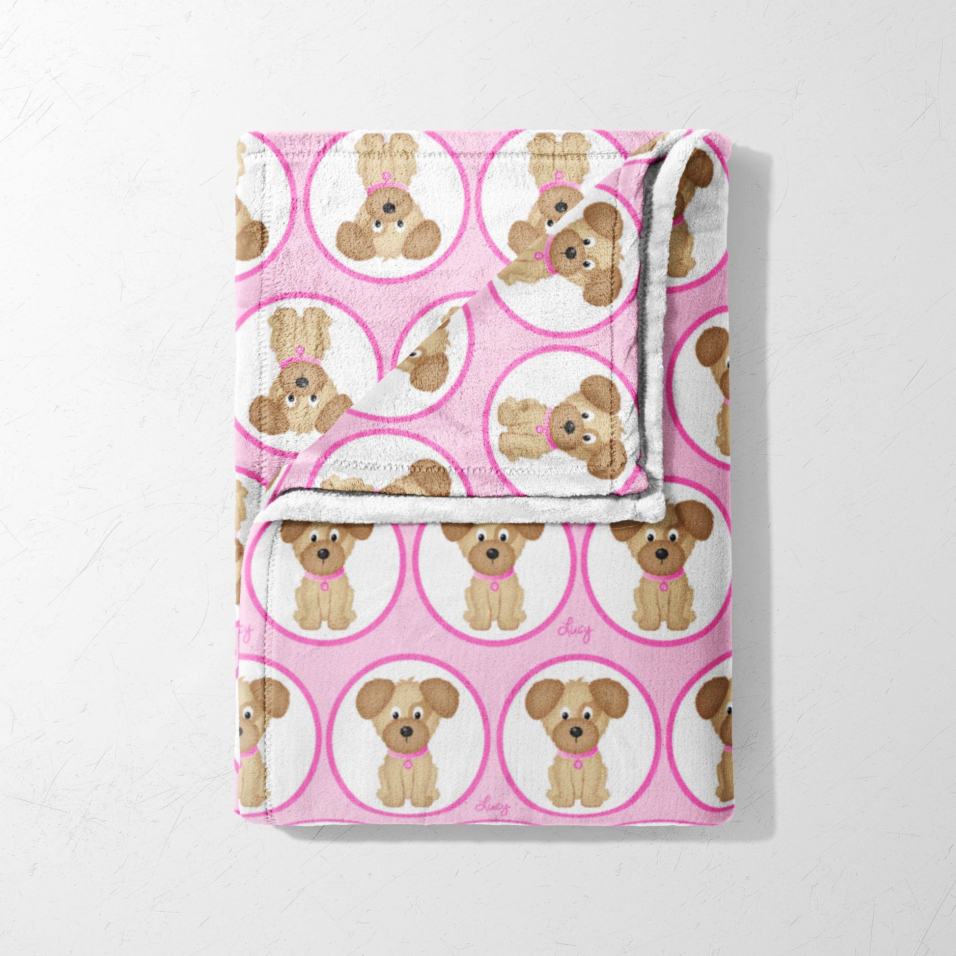 Brrr! Feeling a little chilly? Wrap yourself up in our Pink Puppy Circles Blanket! This extra-soft fleece features cute little pups in circles against a pretty pink background. It's like having a playful puppy party right on your lap! This pattern is perfect for any kid who wants to feel comfy and cozy, whether they're a boy or a girl. And guess what? You can add your name to make it your very own!