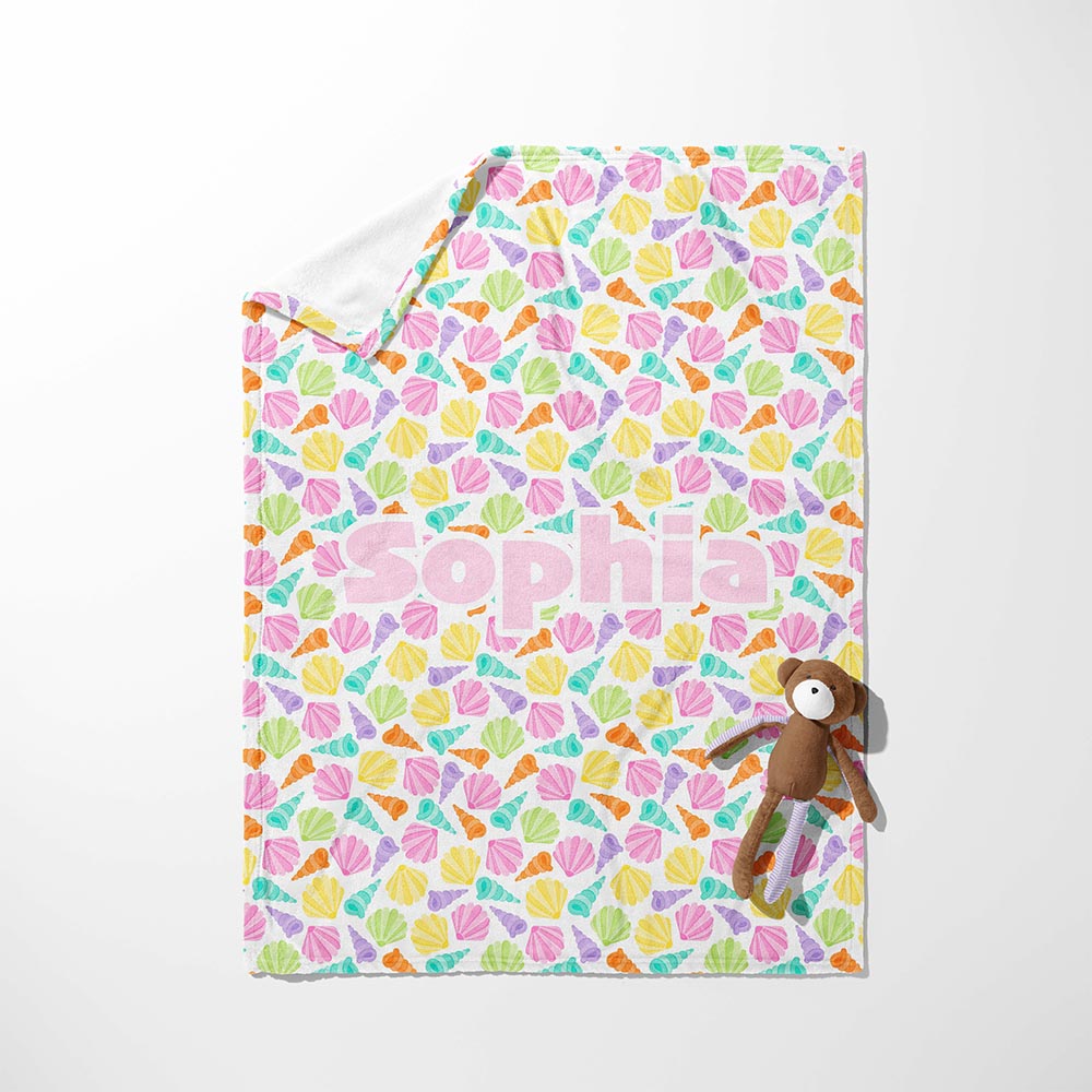 Imagine walking along a sandy beach and finding a treasure trove of colorful seashells! Our Seashell Shore Snuggle Blanket is like a beach day in your bedroom, and it's super soft and cuddly, perfect for wrapping up after a bath or while dreaming of building sandcastles. This blanket is great for girls who love the beach and all things sparkly! And guess what? You can even add your name to make it extra special!