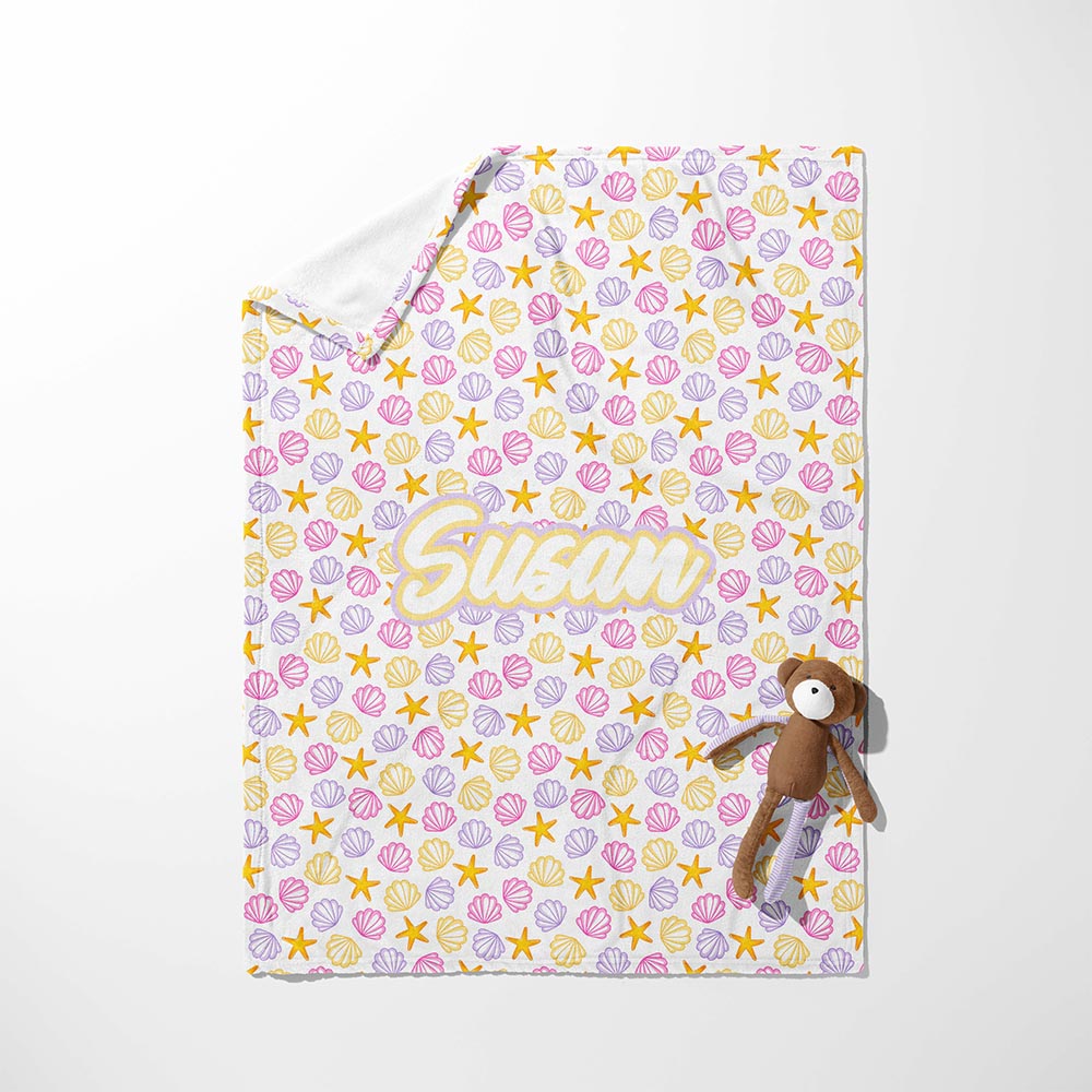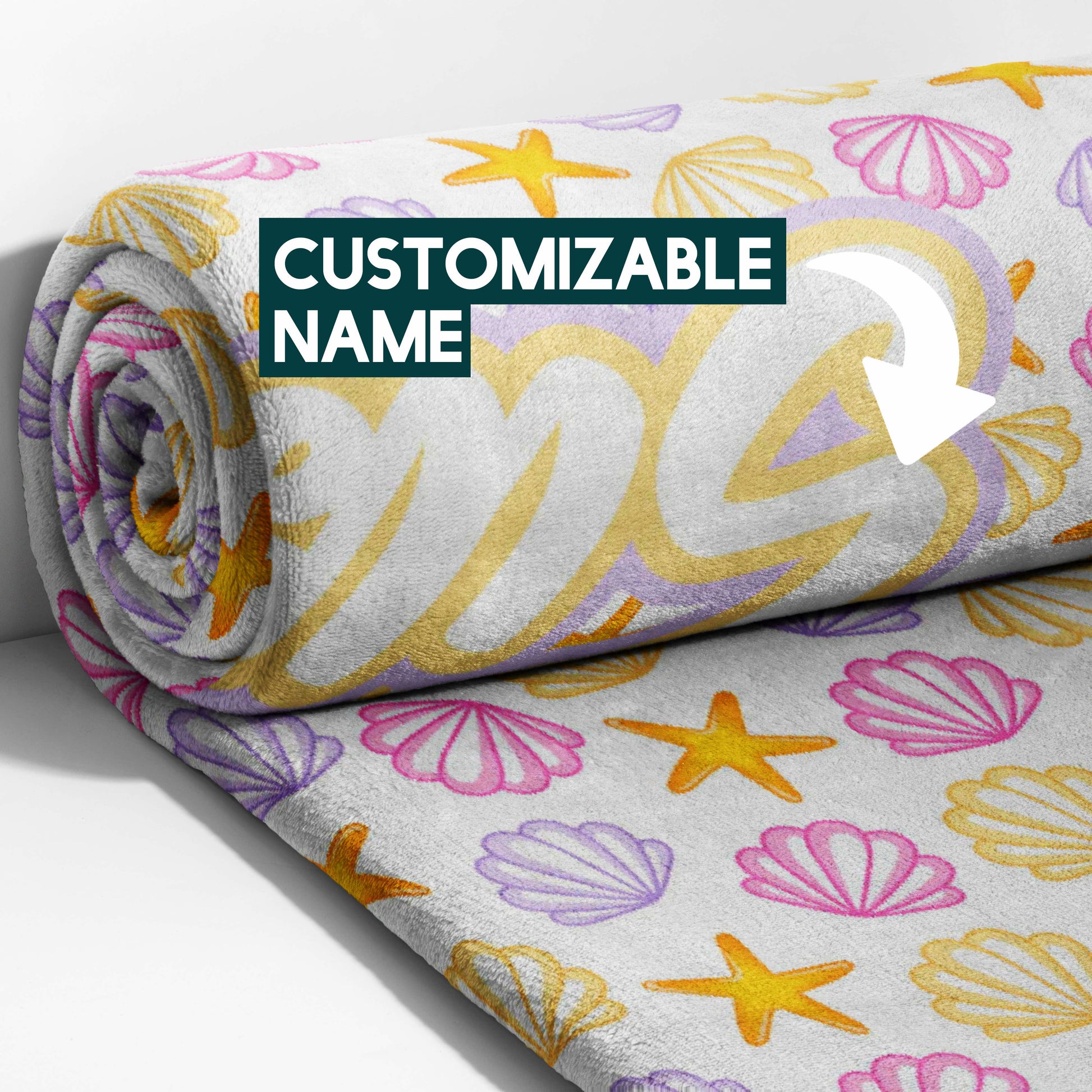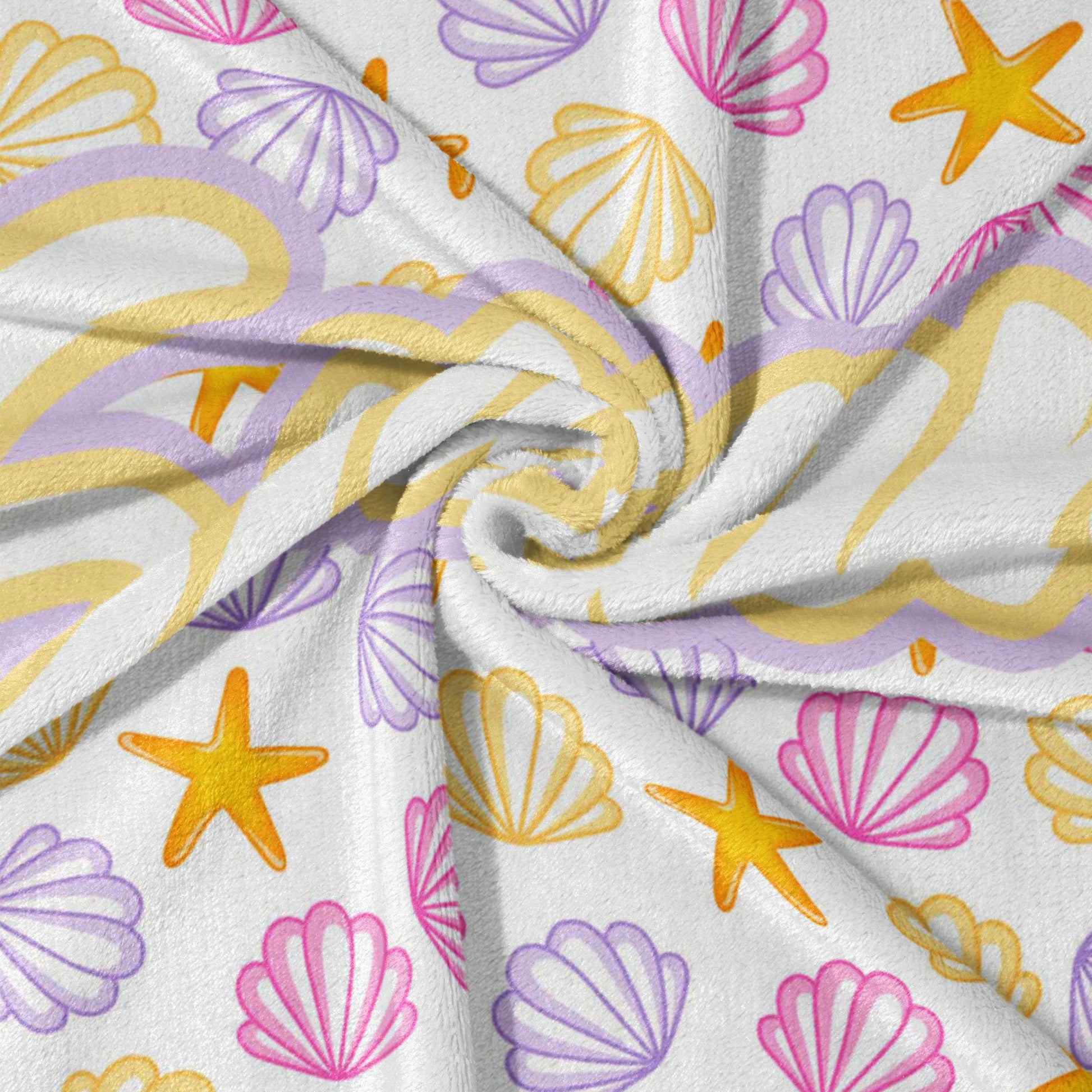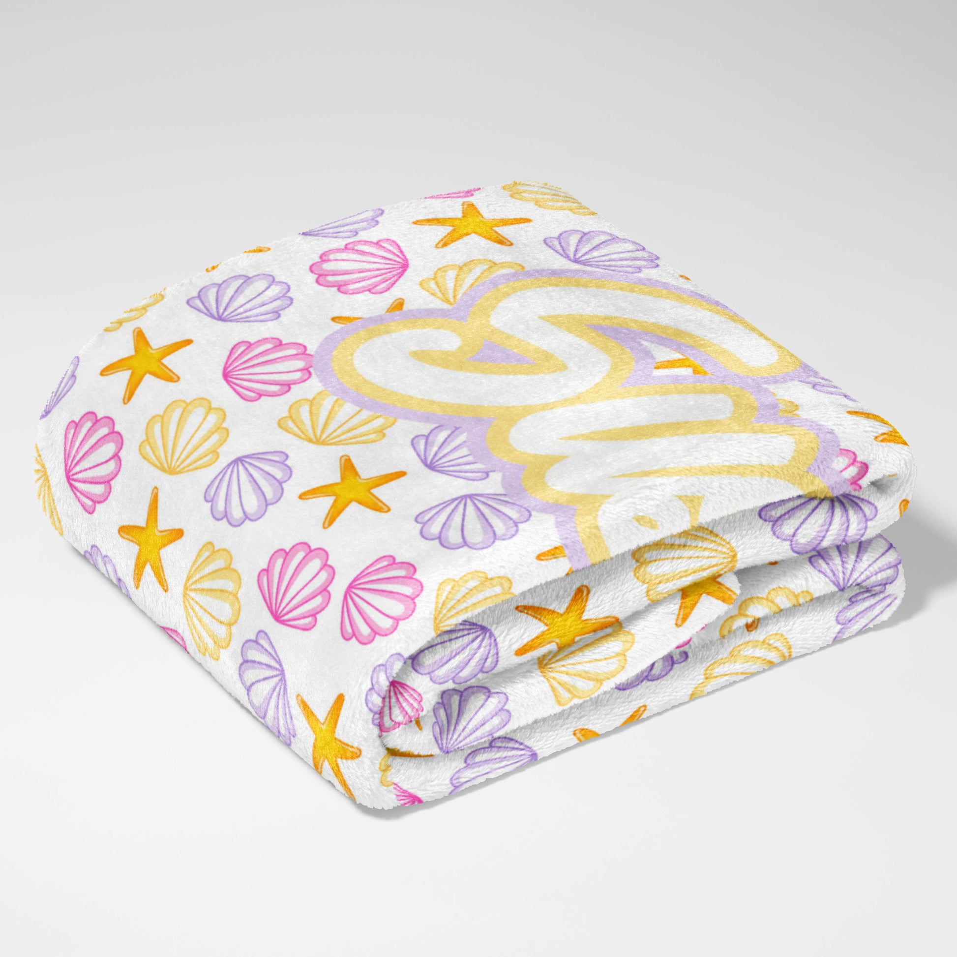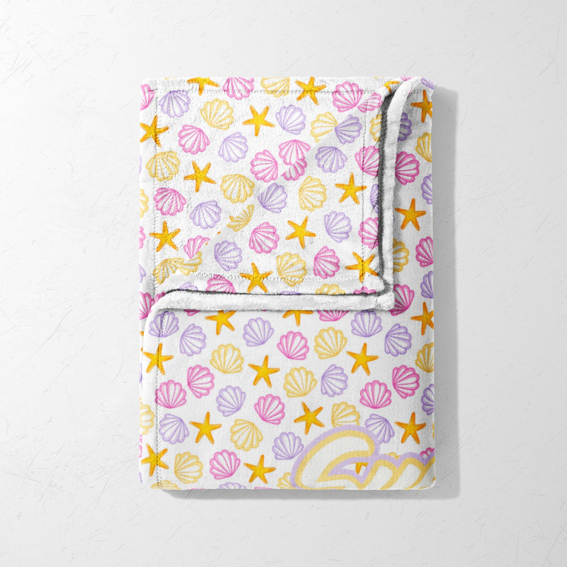 The Seaside Shells Personalized Snuggle Blanket is perfect for your little beachcomber, featuring a playful pattern of colorful seashells and starfish. Made from the coziest, high-quality fleece,