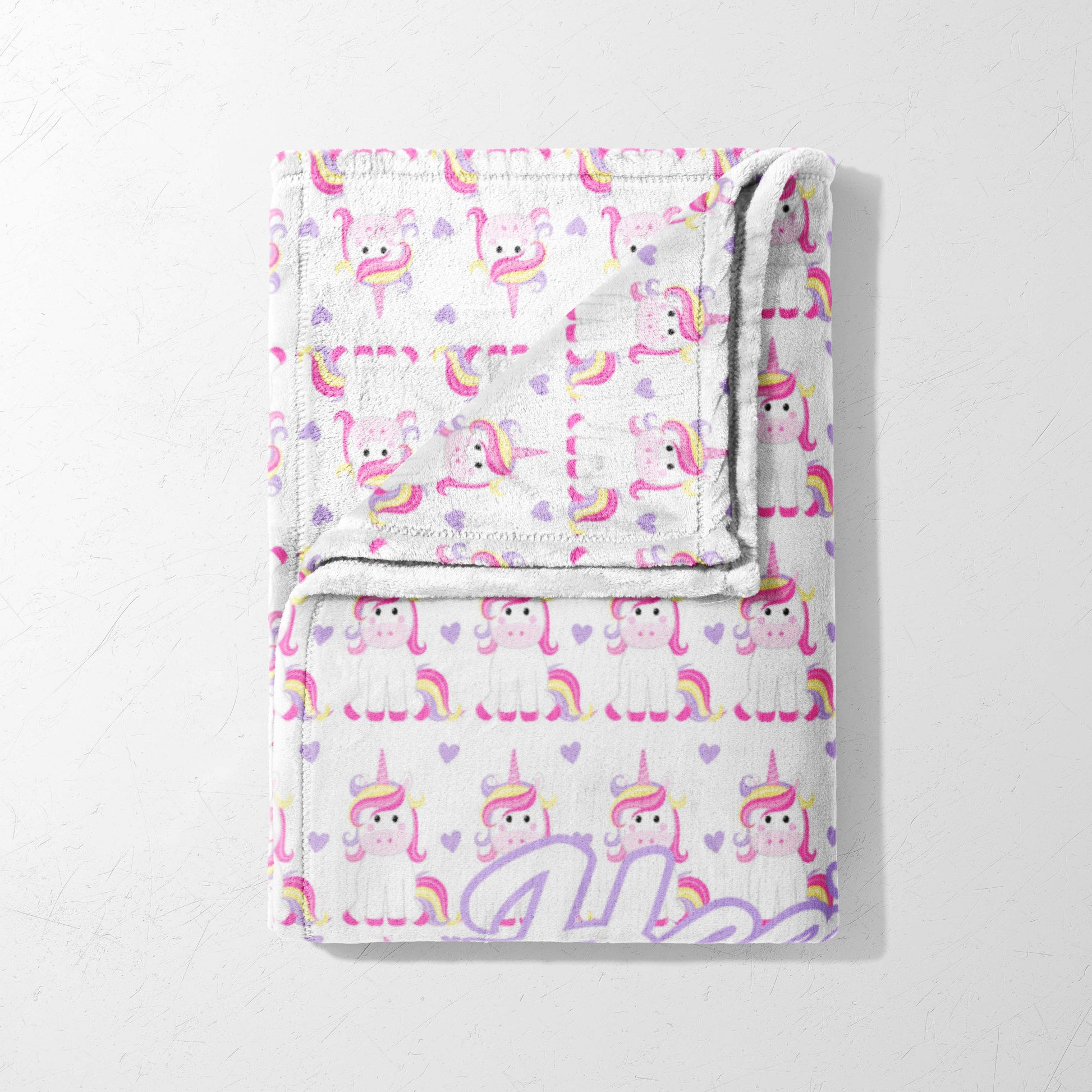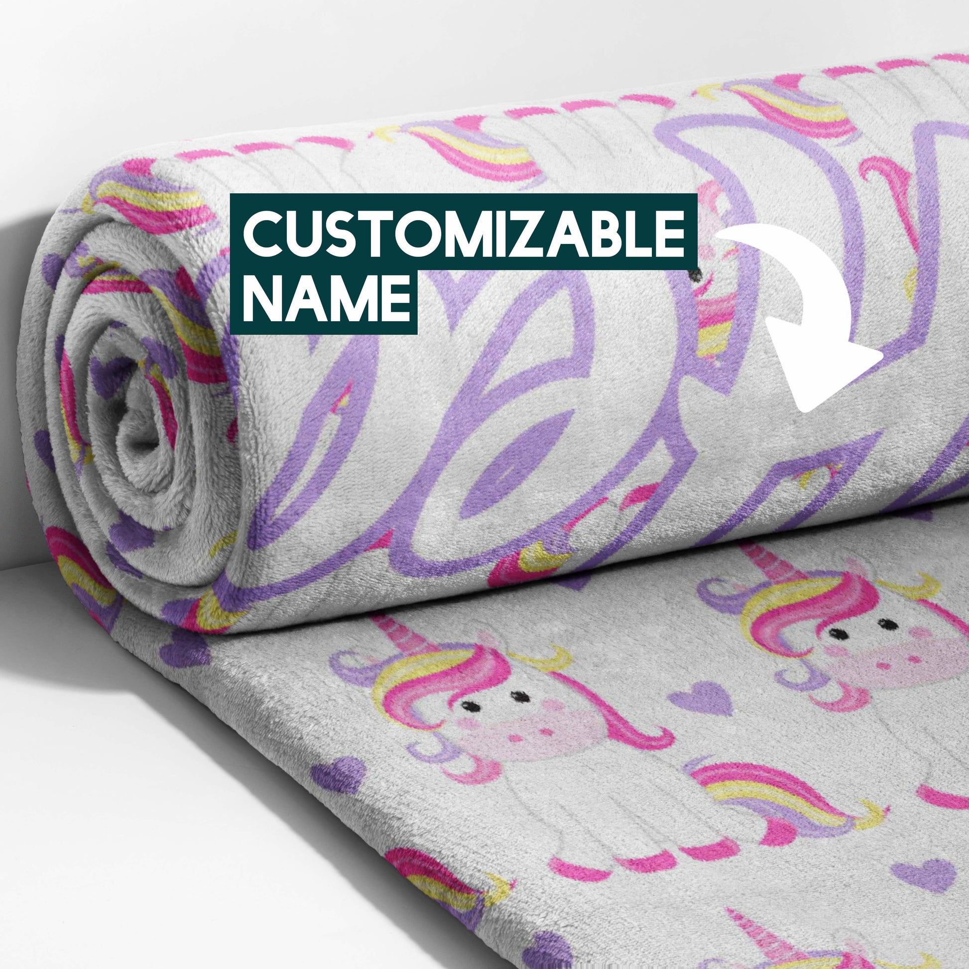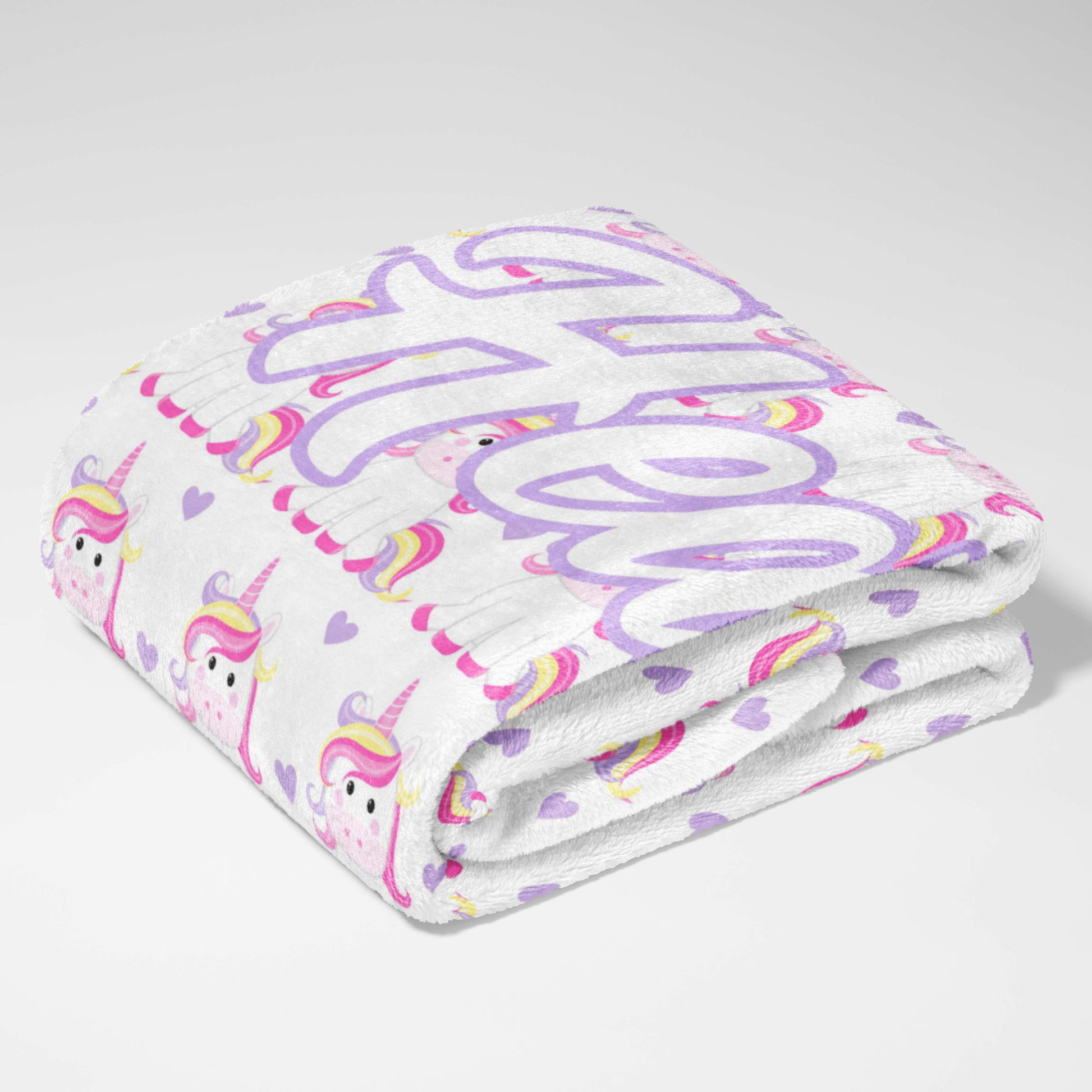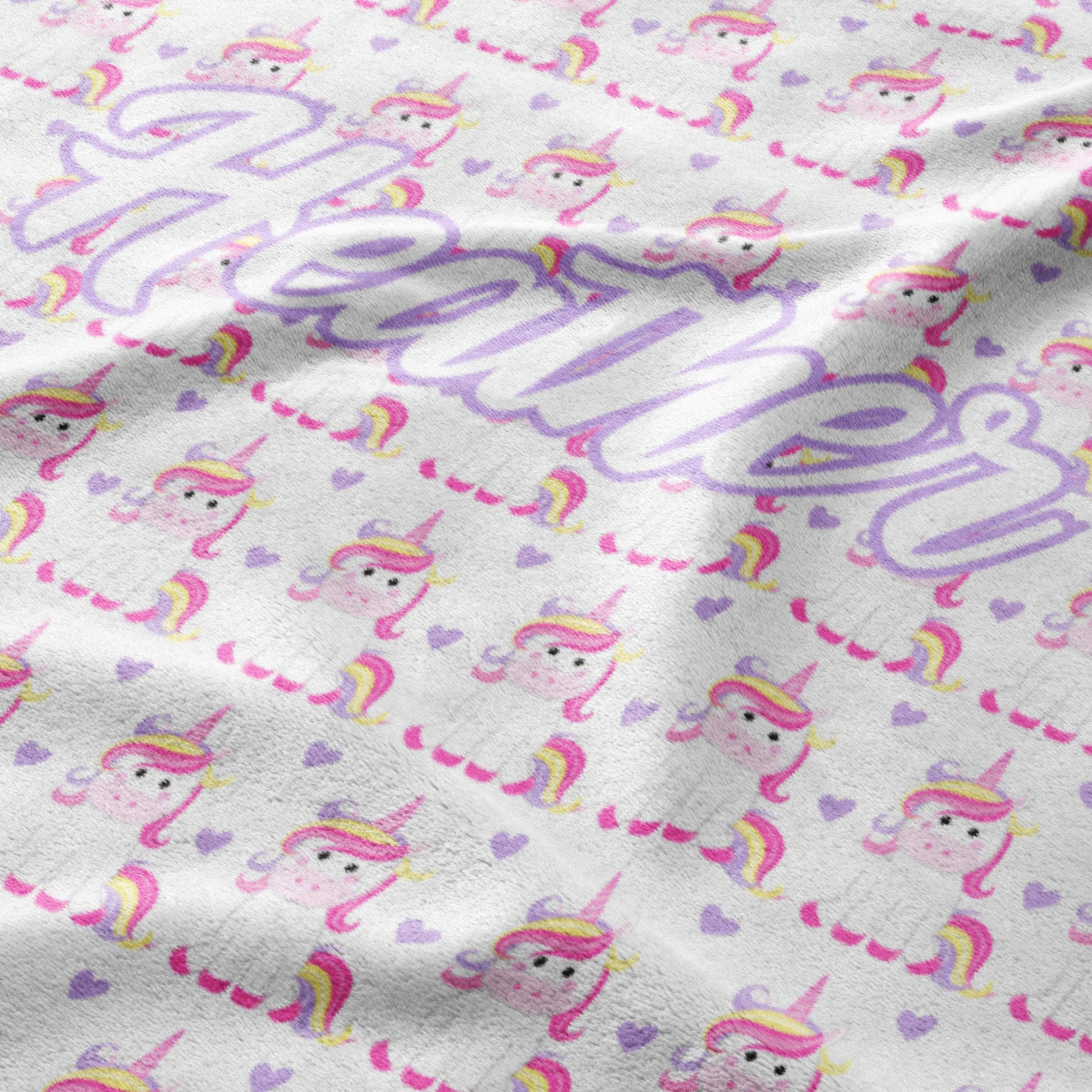 Wow, look at all those sparkly unicorns and little hearts! Our Sparkle Unicorn Dreams Blanket is super soft and magical, perfect for wrapping up after a bath or while dreaming of rainbow adventures. It's like having a unicorn friend to keep you company! This blanket is great for girls who love unicorns and magical dreams. And guess what? You can even add your name to make it extra special!