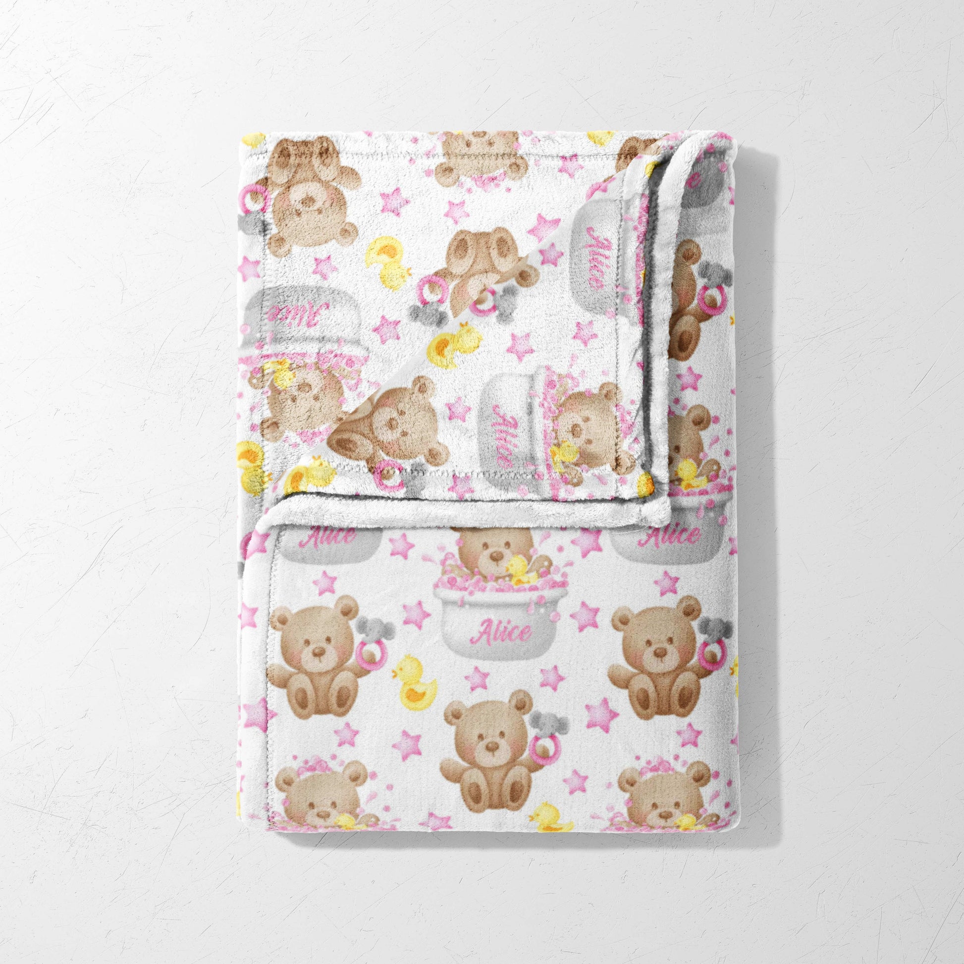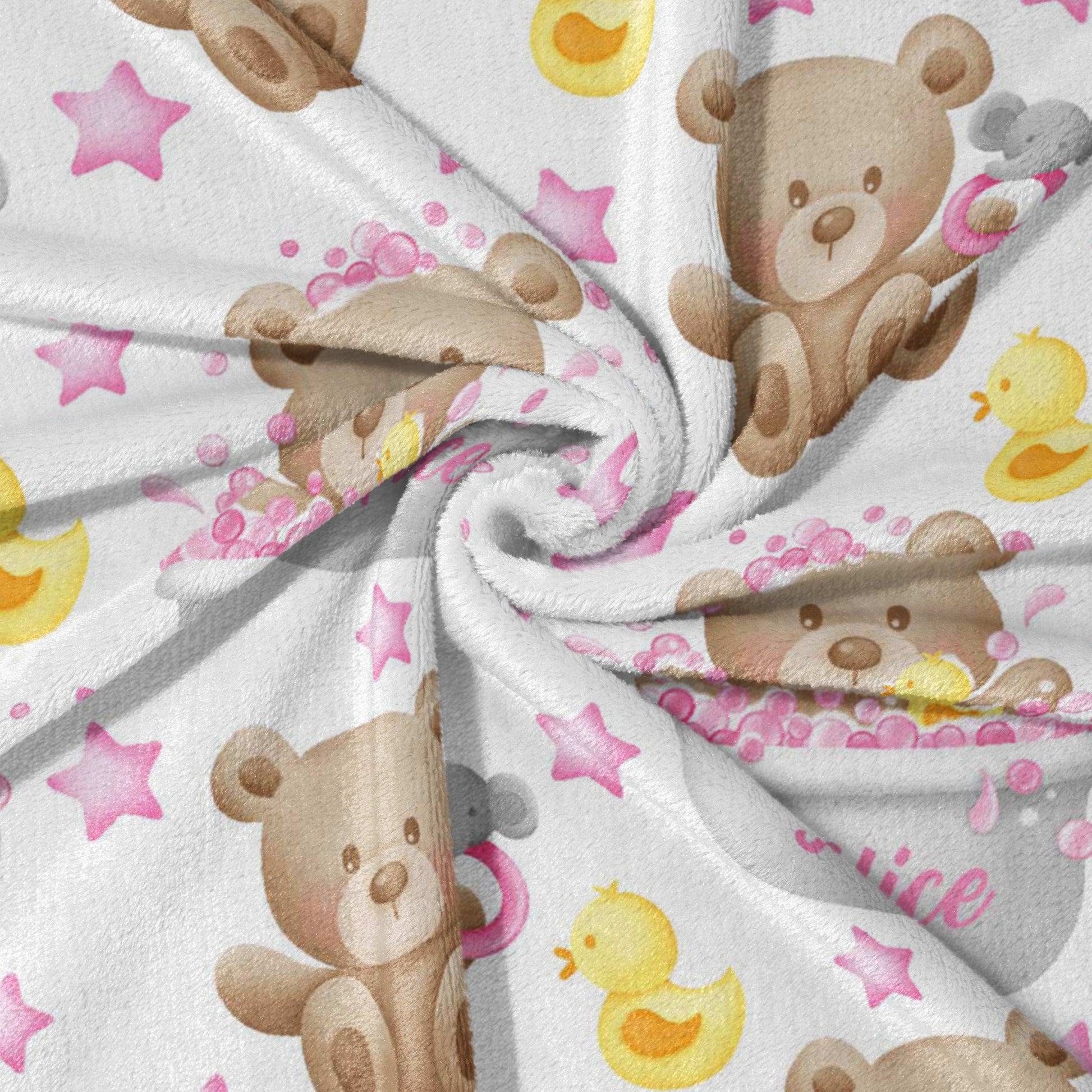 Make bath time extra snuggly with our Teddy's Bath Time Bubbles Fleece blanket! This super soft fleece blanket features adorable teddy bears taking a bubbly bath, complete with rubber duckies and twinkling stars. It's perfect for keeping your little one warm and cozy after bath time, during nap time, or stroller rides. The gentle fleece fabric is kind to sensitive skin and machine washable for easy care. A wonderful gift for newborns and infants!