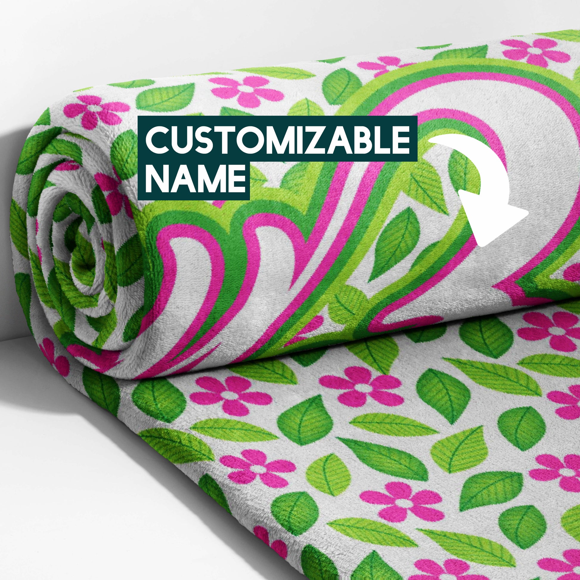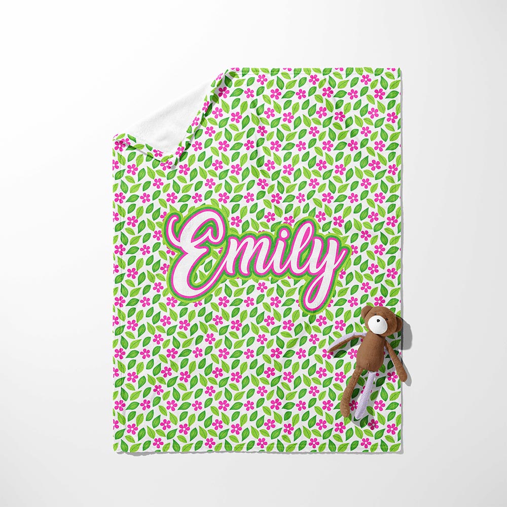 Imagine a field of tiny pink flowers and bright green leaves! Our Tiny Blossoms Blanket is super soft and cuddly, perfect for wrapping up after a bath or while dreaming of springtime fun. It's like having a little garden right on your lap! This blanket is great for girls who love flowers and pretty colors. And guess what? You can even add your name to make it extra special!