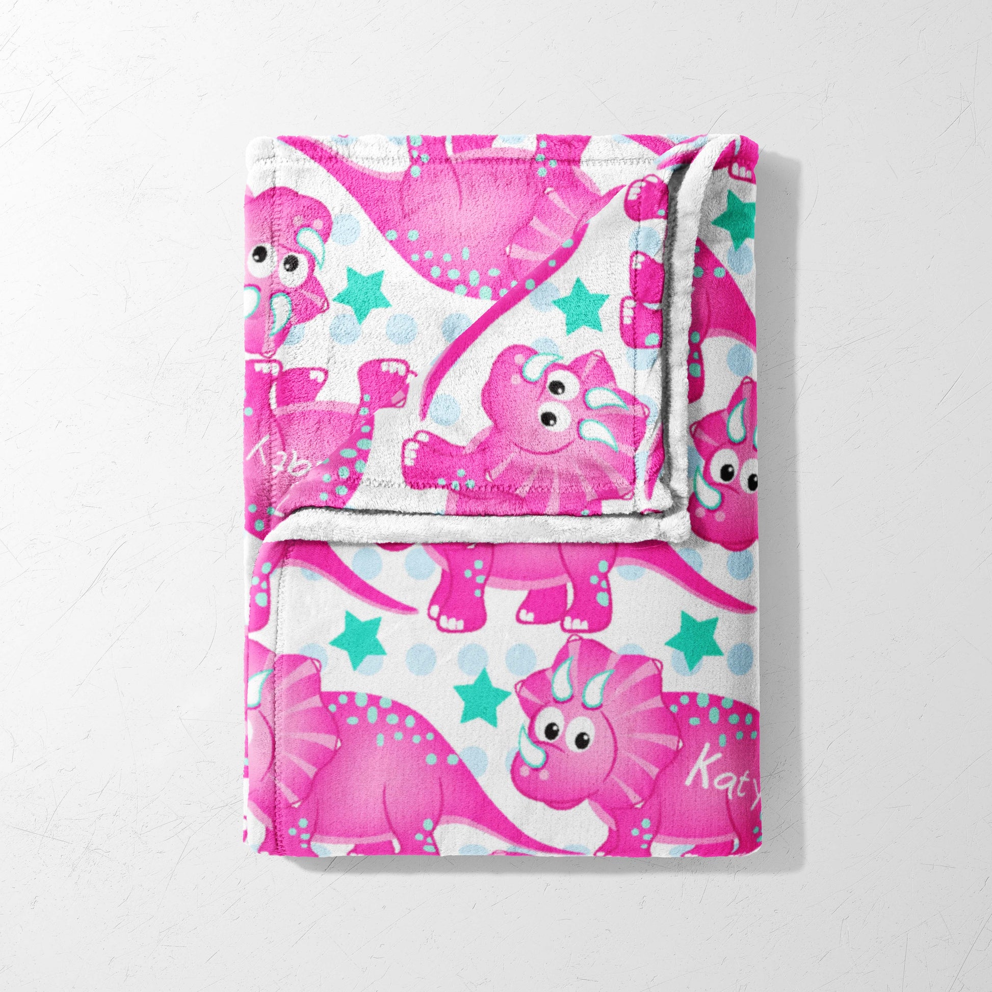 This adorable blanket is bursting with playful Triceratops who can't wait to be your little one's new best friend! With their bright pink smiles and cheerful teal stars, they'll bring a whole lot of fun to snuggle time. Plus, add your child's name to make it a truly roarsome gift!