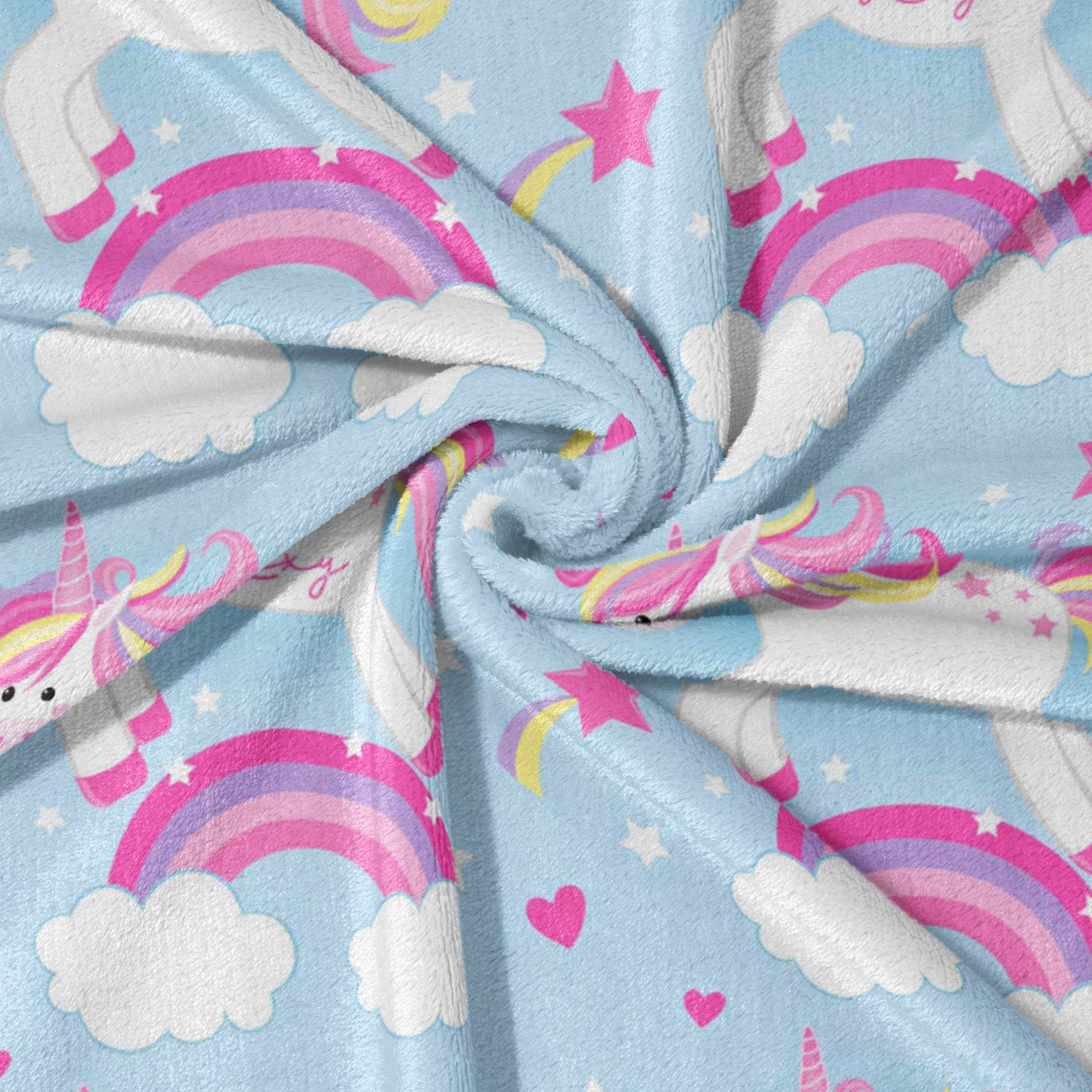 Get ready for a magical adventure with our Unicorn Rainbow Romp Blanket! It's like a playground in the sky with all those playful unicorns frolicking over rainbows! This blanket is so soft and comfy, it's perfect for snuggling up on the couch or having a tea party with your favorite stuffed animals. It's great for girls who love all things sparkly and magical! And guess what? You can even add your name to make it extra special!