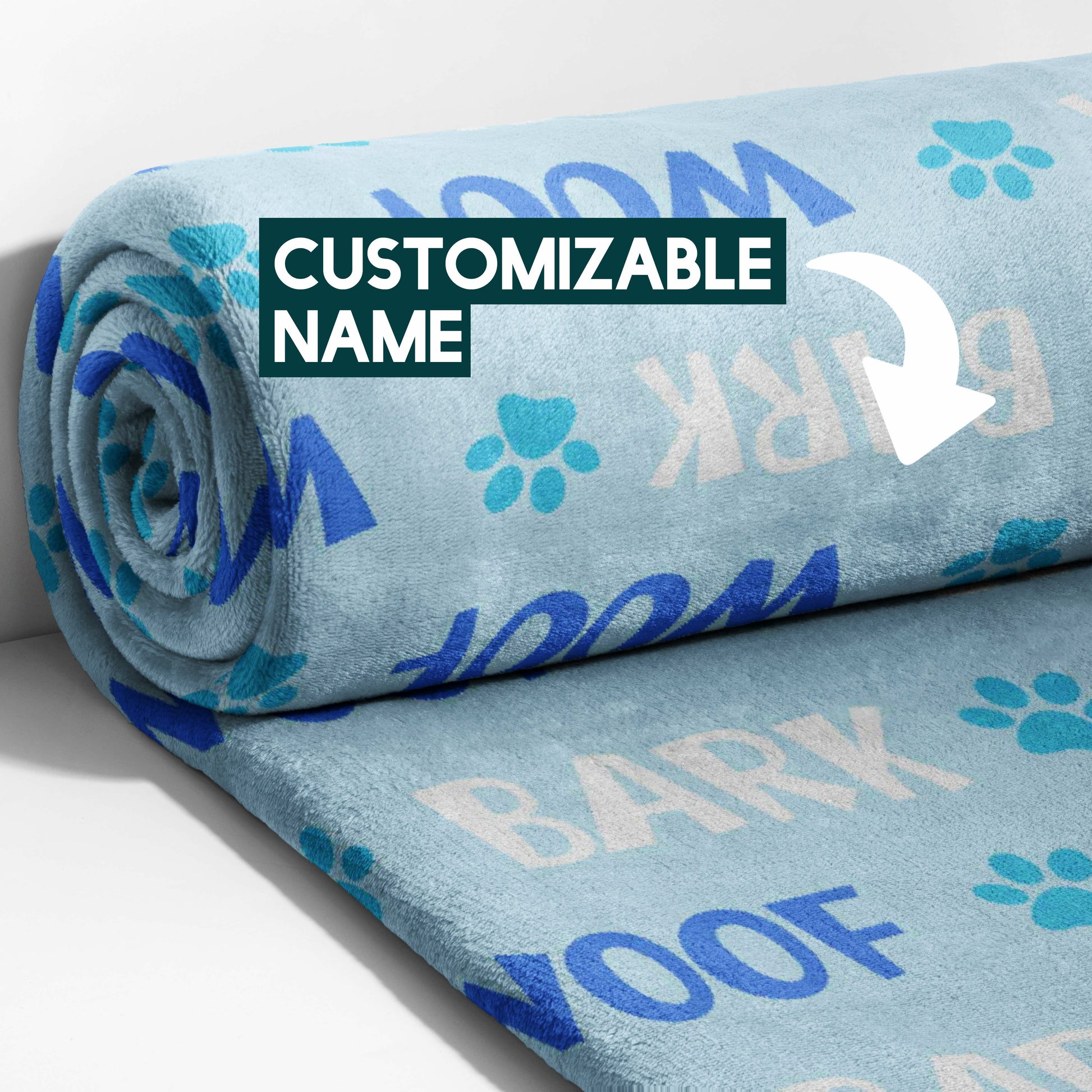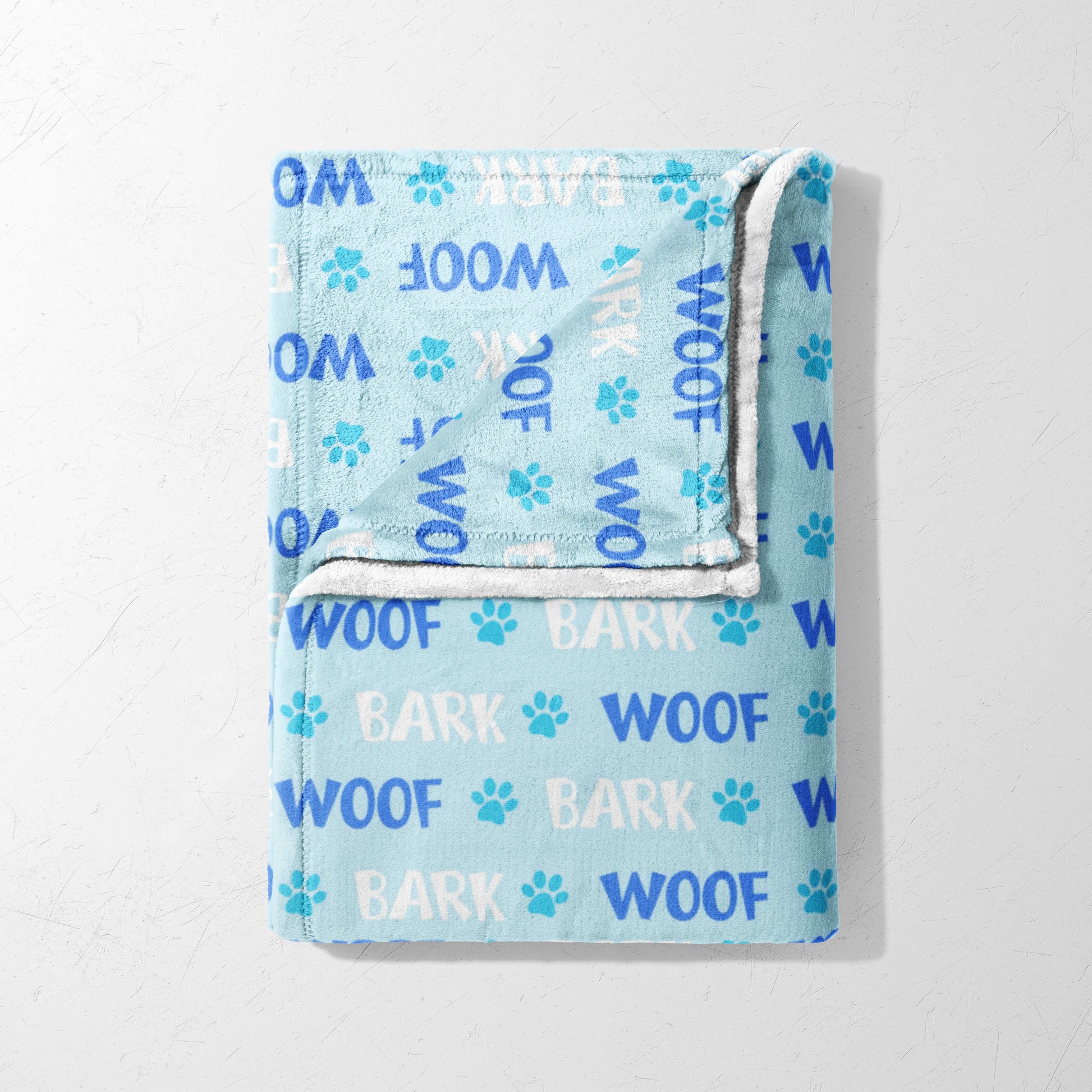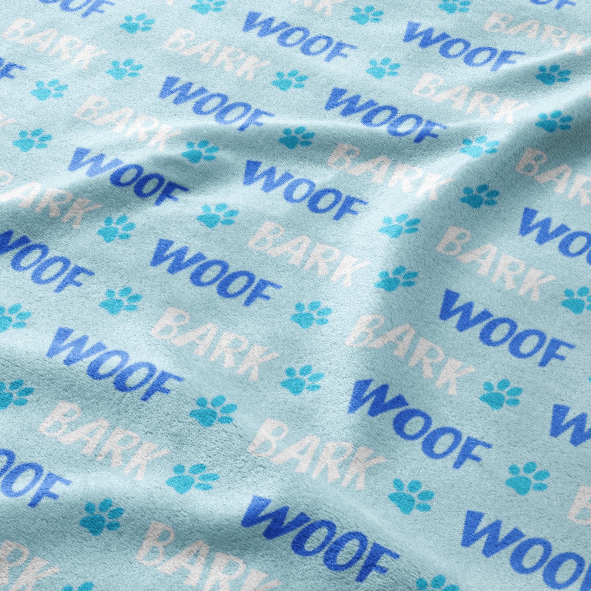 Brrr! Feeling a little chilly? Wrap yourself up in our Woof & Bark Blue Paws Blanket! This extra-soft fleece features fun "WOOF" and "BARK" words and cute blue paw prints all over a light blue background. It's like having a playful puppy party right on your lap! This pattern is perfect for any kid who wants to feel comfy and cozy, whether they're a boy or a girl. And guess what? You can add your name to make it your very own!